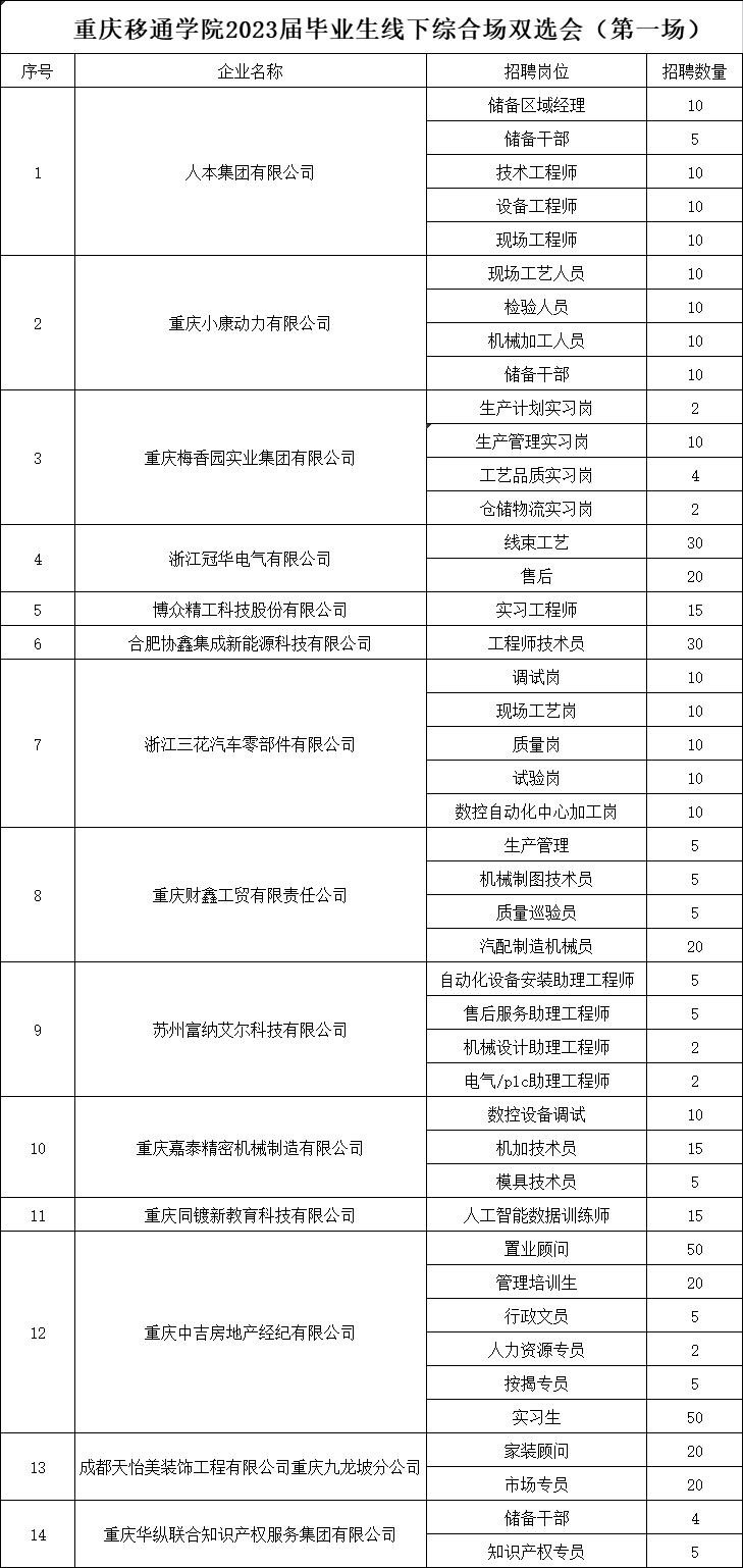 为了给毕业生和用人单位搭建更便捷的交流平台,更好的促进我校2023届毕业生顺利就业,学校定于2022年10月5日14:00在重庆移通学院教工咖啡厅举行重庆移通学院2023届毕业生线下综合场双选会(第一场),届时将邀请14家用人单位莅临我校招聘英才。人才需求涵盖多个行业。欢迎广大应届毕业生积极关注,踊跃参加。请2023届同学们做好相应准备,积极参加此次双选会。