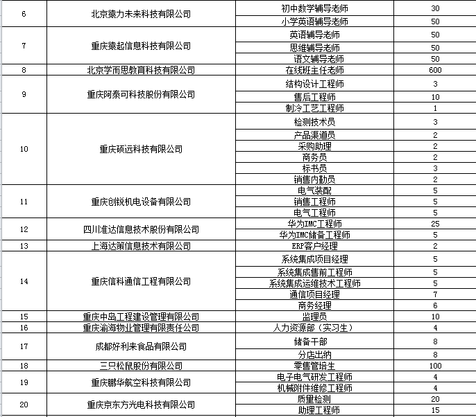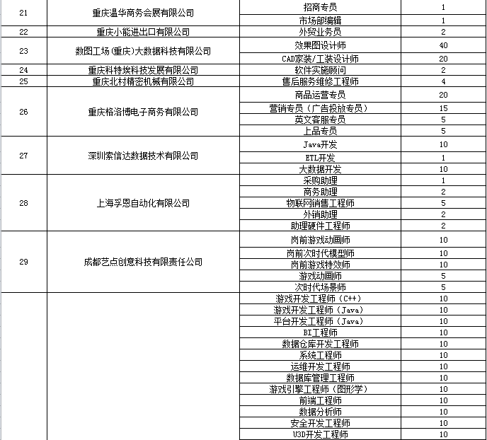 现将具体企业名单及岗位公布如下: