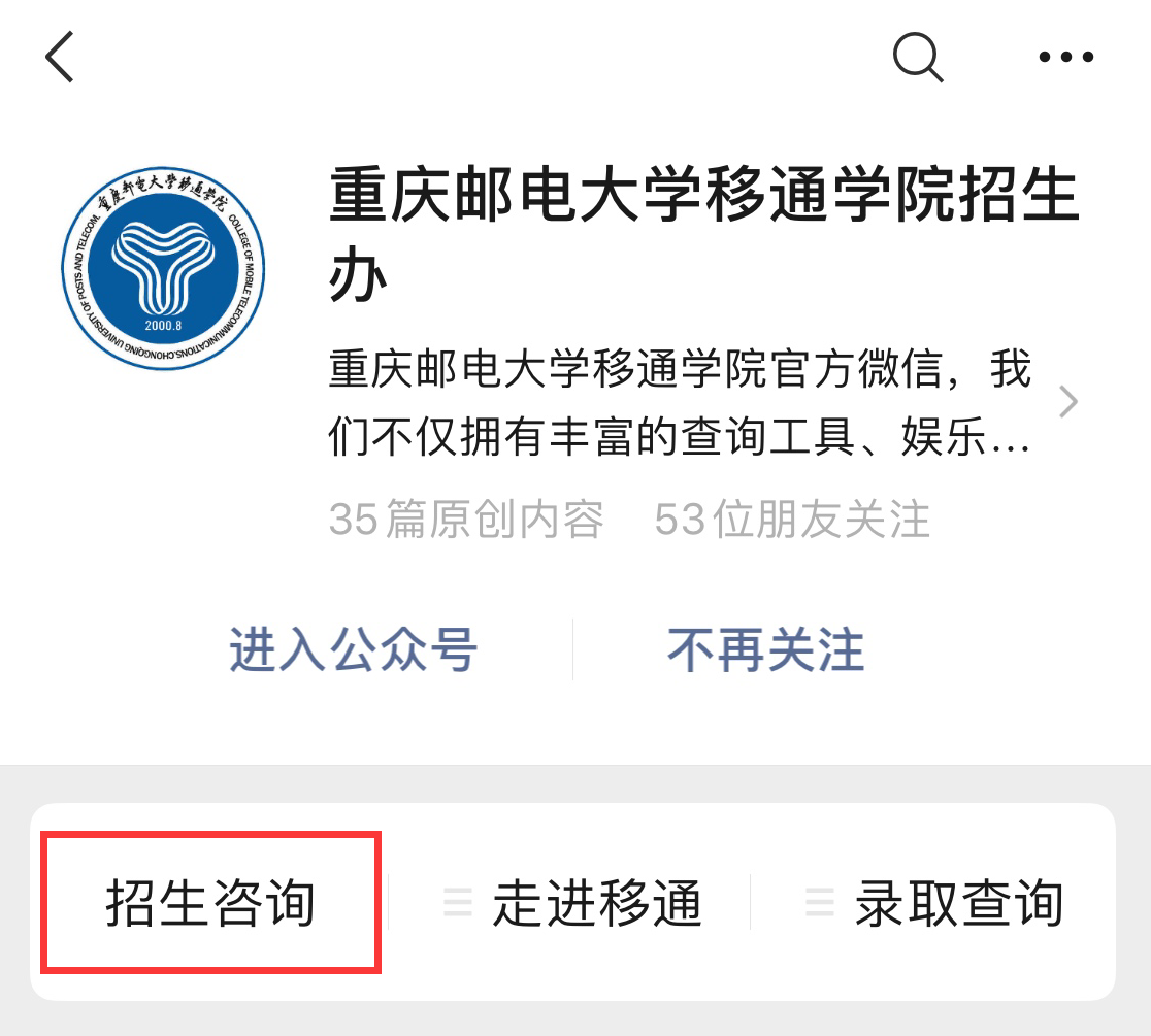 渠道5:重庆邮电大学移通学院招生办微信公众号: