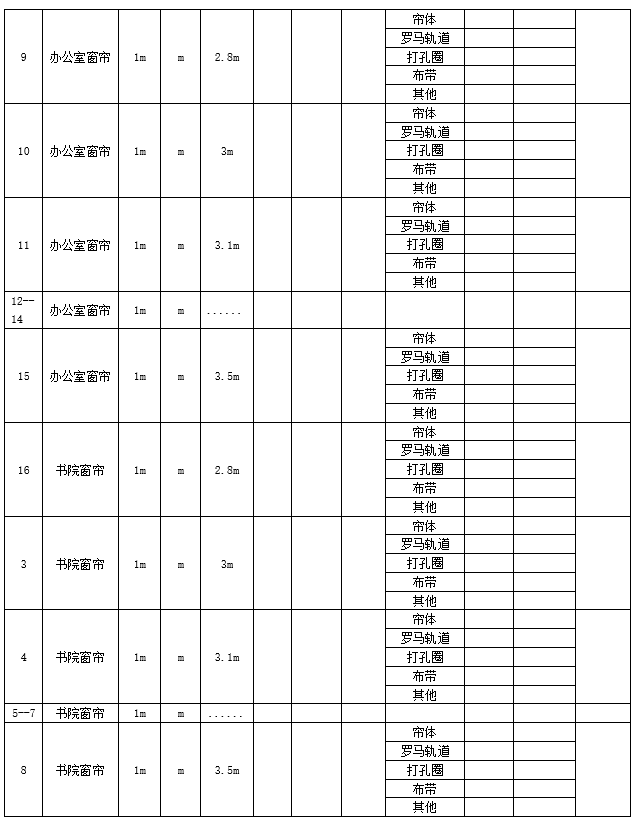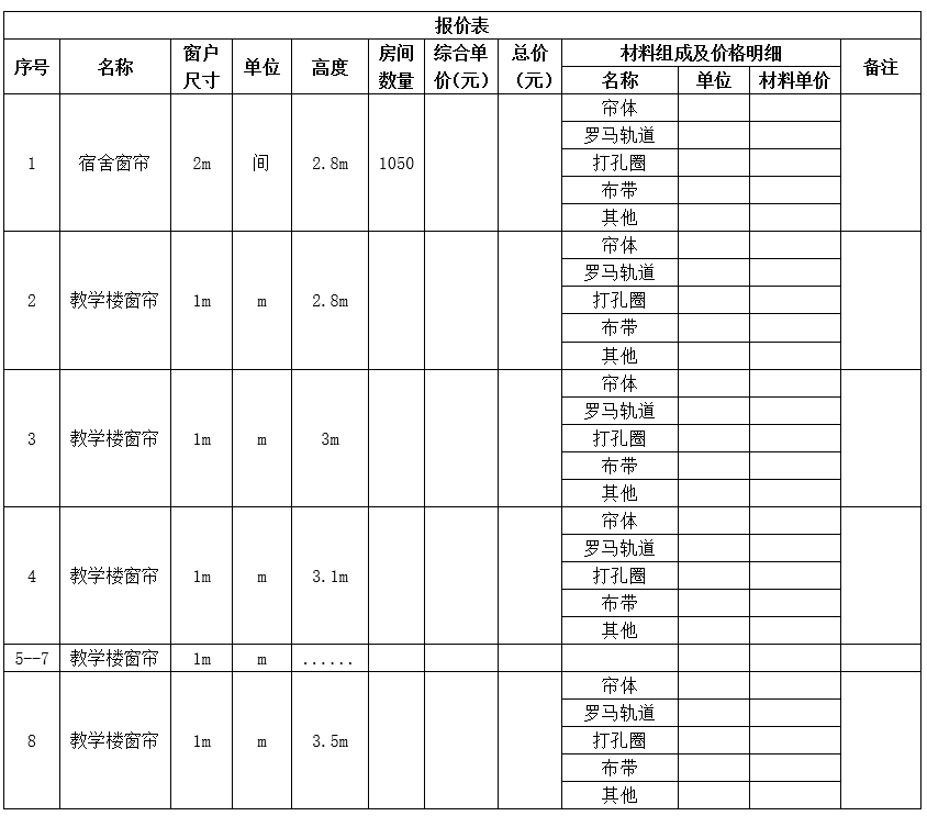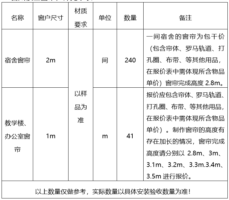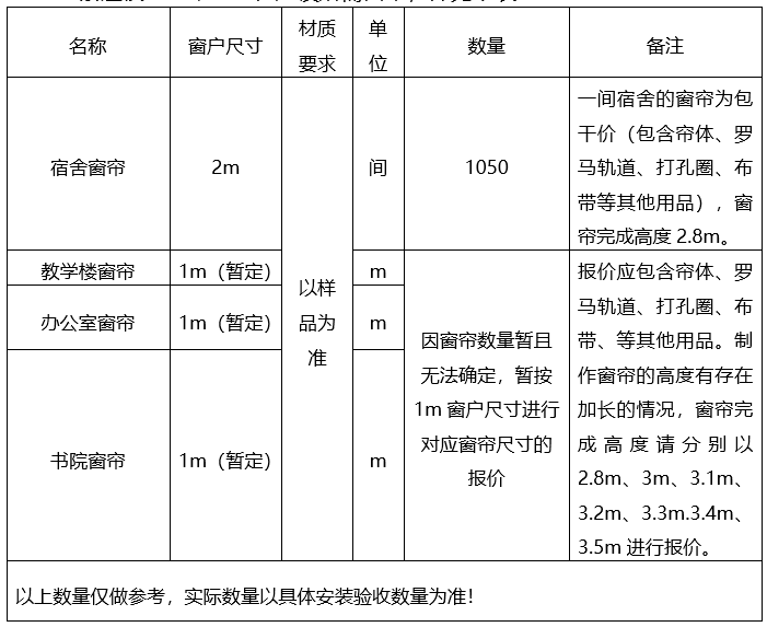 1.綦江校区一期二工程建设所需窗帘,详见下表: