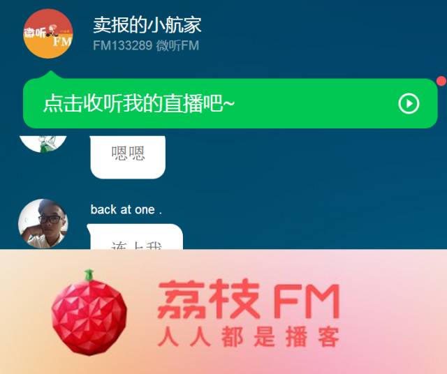 电台通道下载荔枝FM输入房间号:133289即可进入语音直播通道