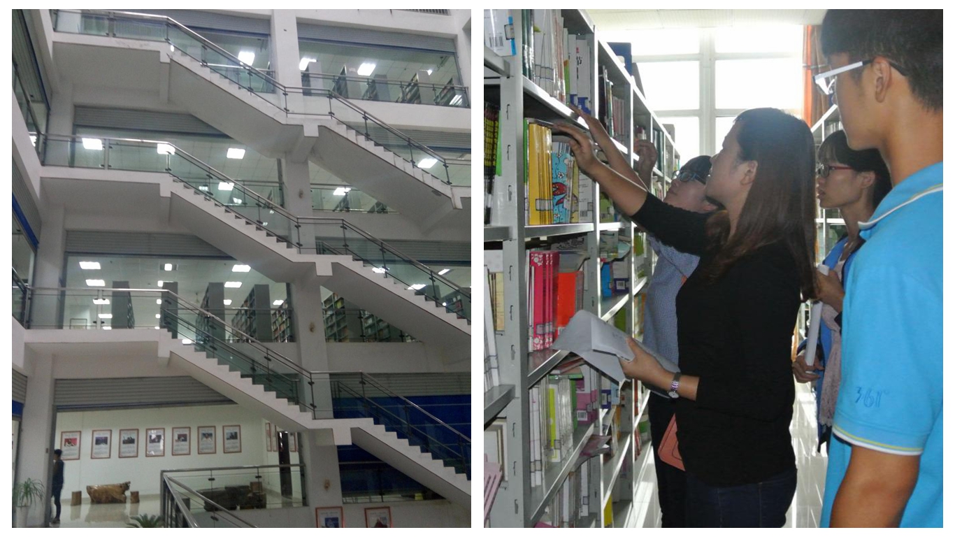 四层楼的书库是图书馆藏书主要场所,各楼层按照图书分类法,从A-Z依次分类排列,供读者在群书中翱翔,休闲座椅给读者提供阅读的场地。为实现学生“自我教育、自我服务、自我管理”,勤工助学学生利用课余时间,到书库进行上书、理架,学习图书分类,尽享书中之美。青年志愿者学生穿梭于书库的每个角落,用睿智的眼光的发现书中的宝典,与他人分享。