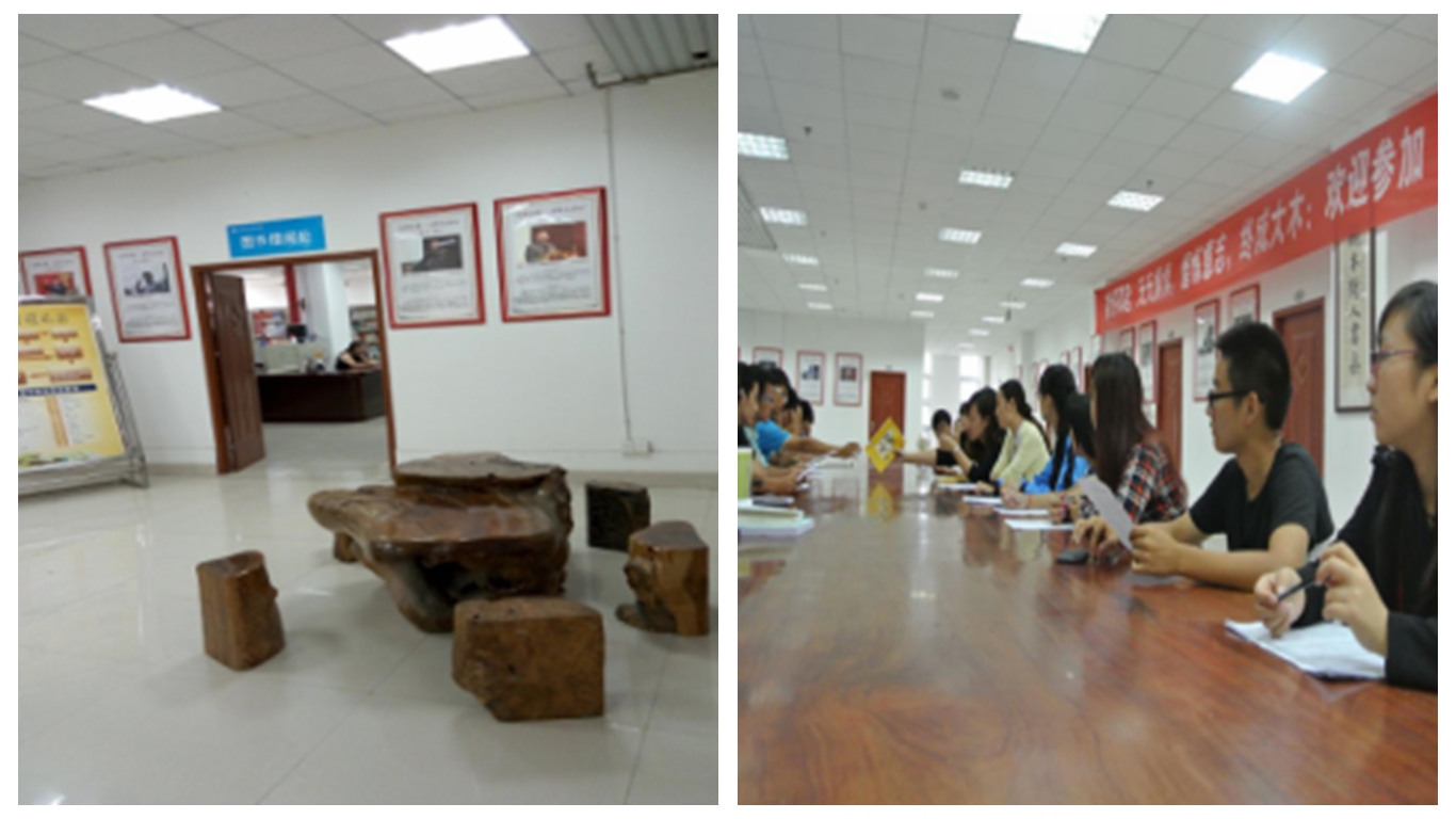 四层楼的自习室为全开放自习室,学生可以自由选择座位,进行自习。自习室宽敞明亮,一共有约3000个阅览座位,每层有独立的饮水区域及卫生间,为学生自习提供方便。其中,也设有期刊室,现刊和过刊有300多种,供读者阅览,期刊室不定期开展阅读活动,与读者进行阅读互动。