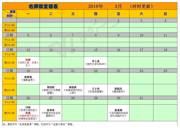 6.三月课表已发布,请同学们按时上课,如有多于一次未来上课,将取消其下一次选课资格。