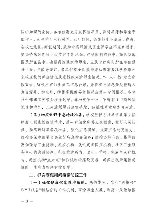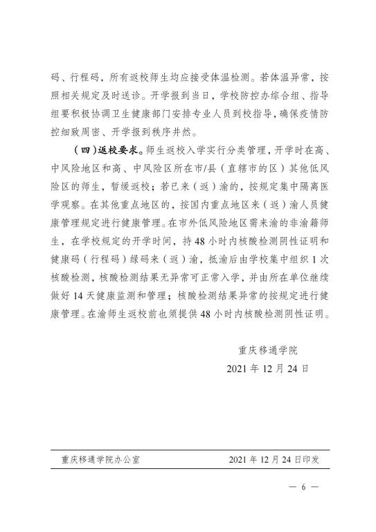 重庆移通学院关于切实做好当前及寒假期间校园疫情防控工作的通知