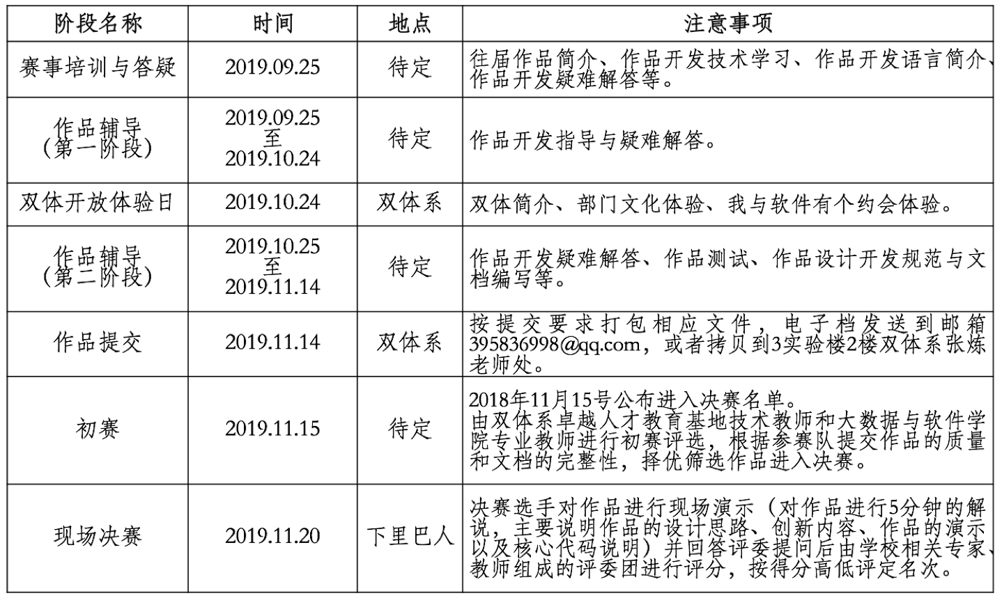 为激发和展示我校学生在计算机应用设计方面的动手能力,培养学生对软件开发的兴趣,增强将理论知识转为实际软件产品的能力,同时进一步做好我校软件人才的储备工作,特举办第八届“双体杯”大学生计算机应用大赛。