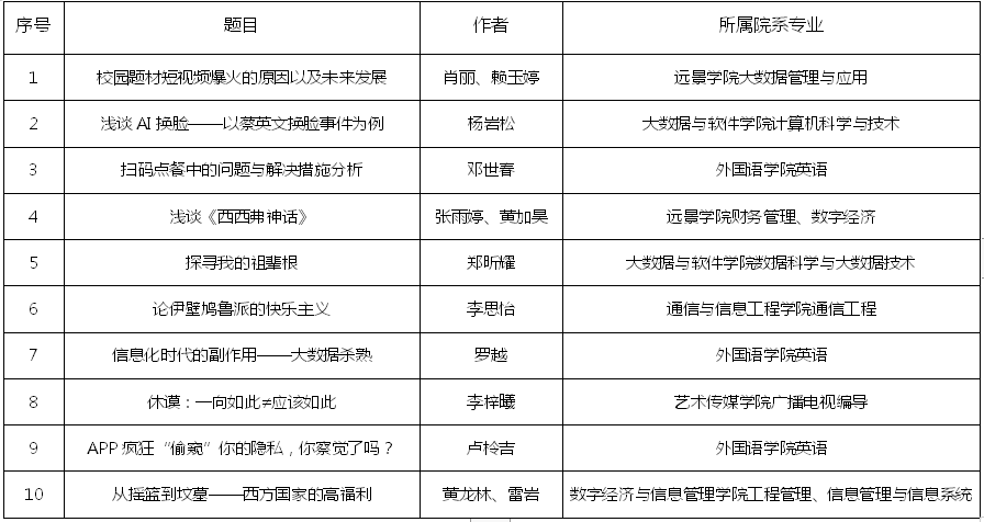 以上10篇论文将作为重庆移通学院的集体参赛作品,参赛学生所取得的个人成绩同时计入集体成绩。