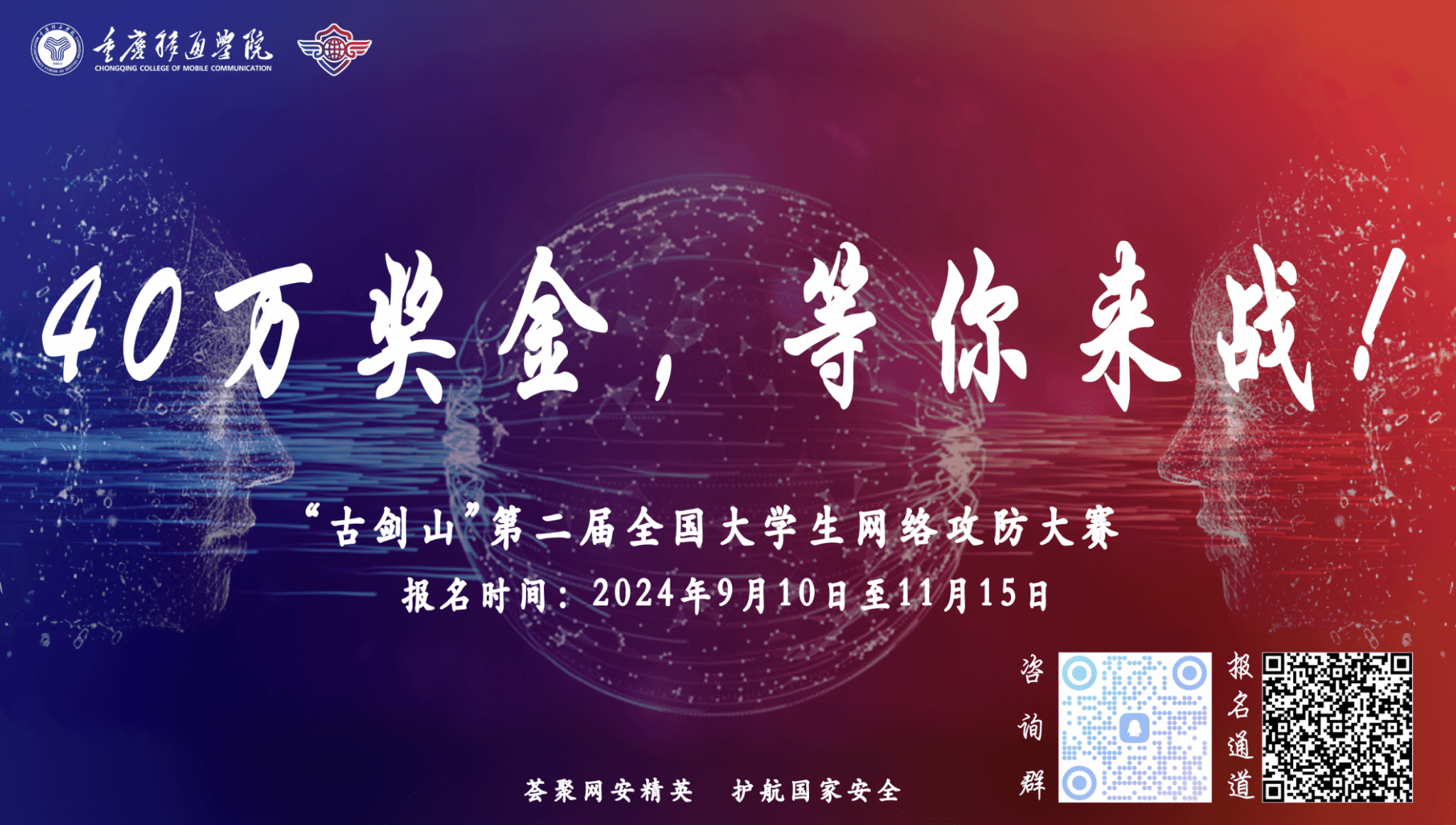 在世界百年未有之大变局中,在以网络化、数字化、智能化为主要特征的新一轮技术革命浪潮推动下,世界处于形成新的政治、经济、文化、社会生态期。网络安全正在以广泛影响力深度融入国家博弈和我们的日常生活中。为了确保网络的稳定和可靠性,创新网络安全人才培养机制,选拔优秀网络安全专业人才,重庆移通学院决定举行“古剑山”第二届全国大学生网络攻防大赛,现将有关事项通知如下: