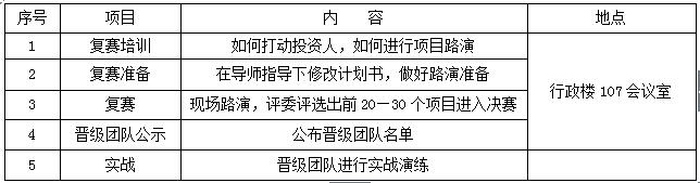 第一阶段:报名并提交计划书(10月31日—11月15日) 创业计划书撰写培训,11月9日,行政楼A栋601会议室(暂定)