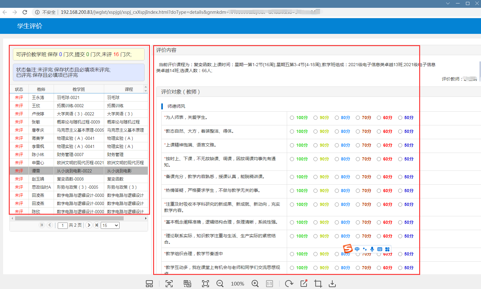 1.评教时间:2022年12月16日08:30-12月23日23:00