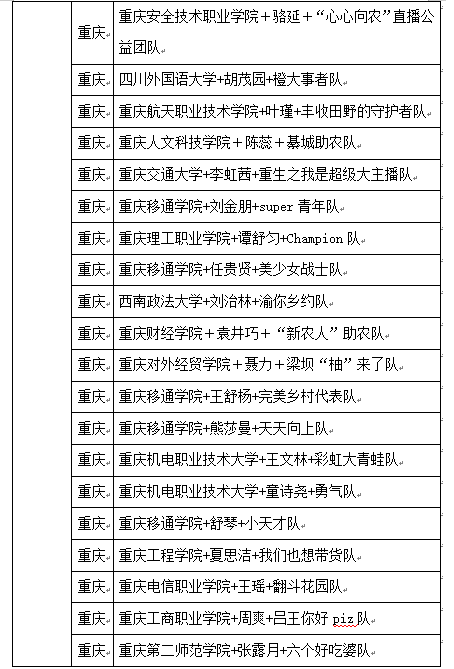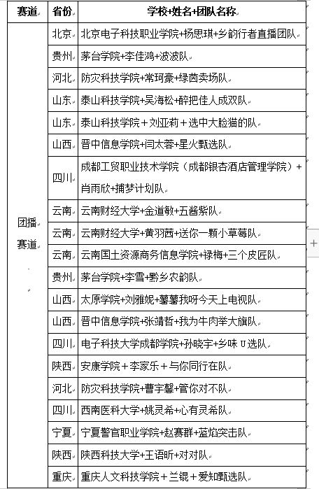 为深入学习宣传贯彻习近平新时代中国特色社会主义思想和党的二十大精神,认真贯彻落实习近平总书记关于青年工作的重要思想和关于“三农”工作的重要论述,根据《重庆移通学院关于举办2024“青耘中国”大学生数字媒体营销大赛的通知》的具体内容,邀请业界评审专家对来自全国12个省市、50所高校的436支队伍提交的作品进行了全面而细致的评选,现分别评选出团播队伍40支、个人直播40人晋级复赛。现将复赛具体名单公示如下,公示日期:2024年4月30日-2024年5月4日。