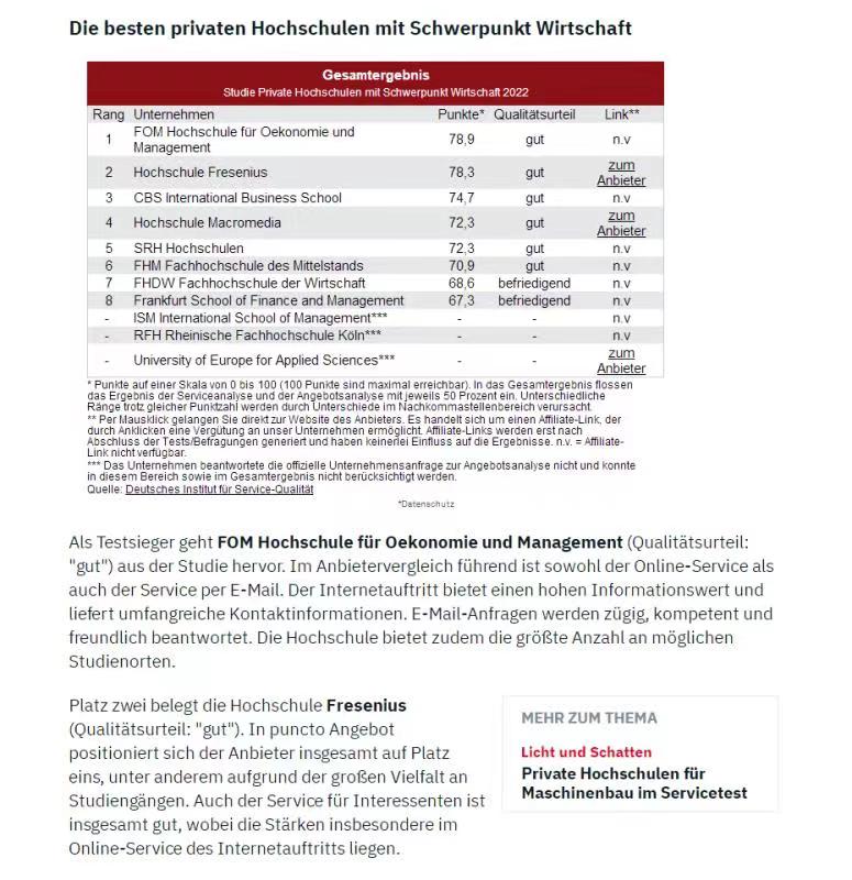 ◆FOM是由德国经济学委员会认可的具有颁发硕士学位的、非常有实力和影响力的知名商科大学。