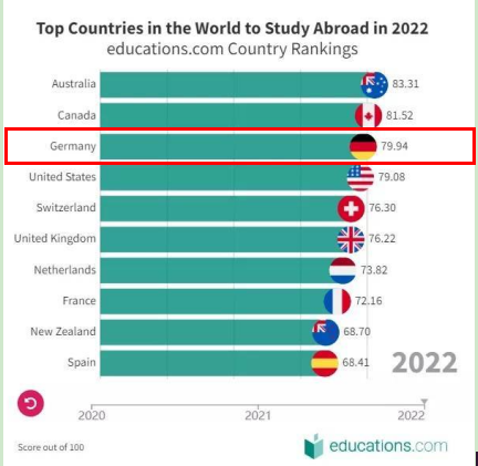 今年2月中旬,全球教育网站education.com发布了2022年全球十大最佳留学国家排行榜(Top 10 Places in the World to Study Abroad - 2022),德国稳居前三。德国教育一向以严谨著称,机械制造方面属于世界顶端,大多数留学生选择德国,更多的是看着其机械、工程等理工科专业,而事实上,德国的经济金融类专业也名列世界前茅。