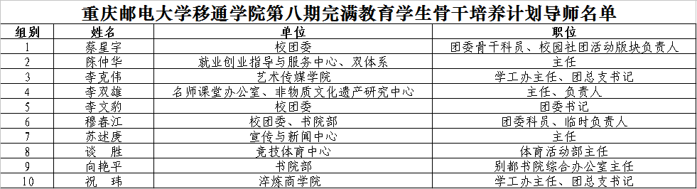 附件一: 重庆邮电大学移通学院第八期完满教育学生骨干培养计划导师名单.xlsx