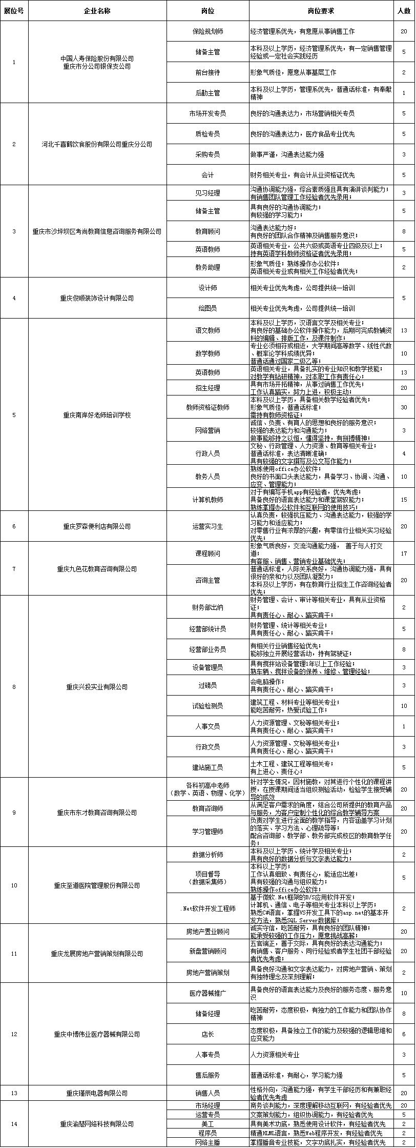 届时将邀请14家用人单位莅临我校招聘英才。人才需求涵盖金融、餐饮、零售、地产、教育等多个行业。欢迎广大应届毕业生积极关注,踊跃参加。请2017届同学们做好相应准备,积极参加此次院系专场招聘会。 温馨提示: 1.请各位同学提前准备好具有针对性的简历; 2.请各位同学注意着装。