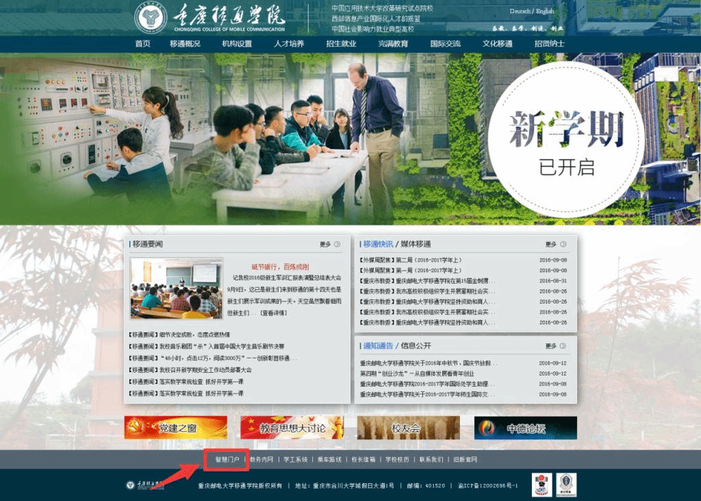 进入学校官网,点击下方“智慧门户”,进入平台。