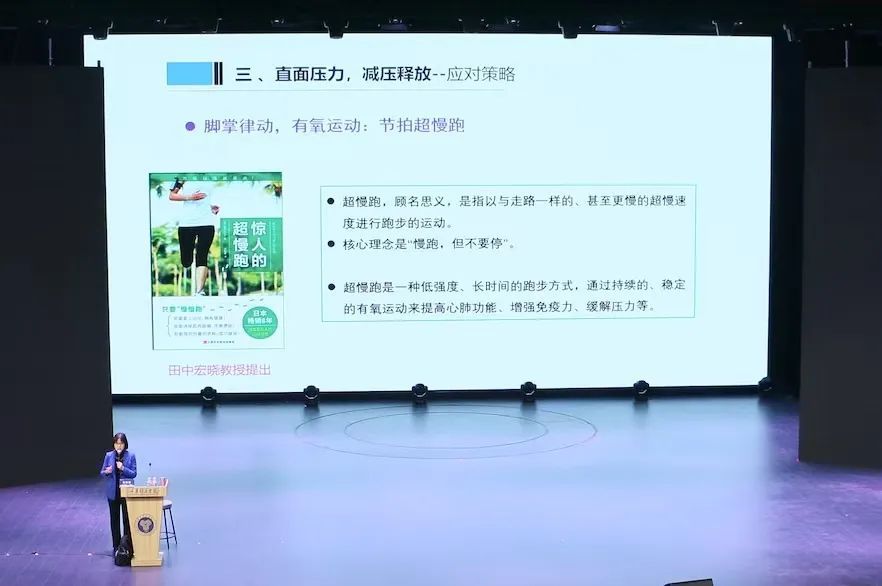 面对压力,耿柳娜教授强调,它本身并无好坏之分,关键在于个体的应对方式。她带领同学们进行“雨中的你”绘画互动,通过简单的绘画分析个人情绪状态,启发大家思考压力与情绪的关联。她还介绍了“呼吸感知操”“超慢跑”“辣椒刺激法”“做梦调节法”“自然景观疗愈”等多种方法,帮助大家有效释放压力、调节情绪。
