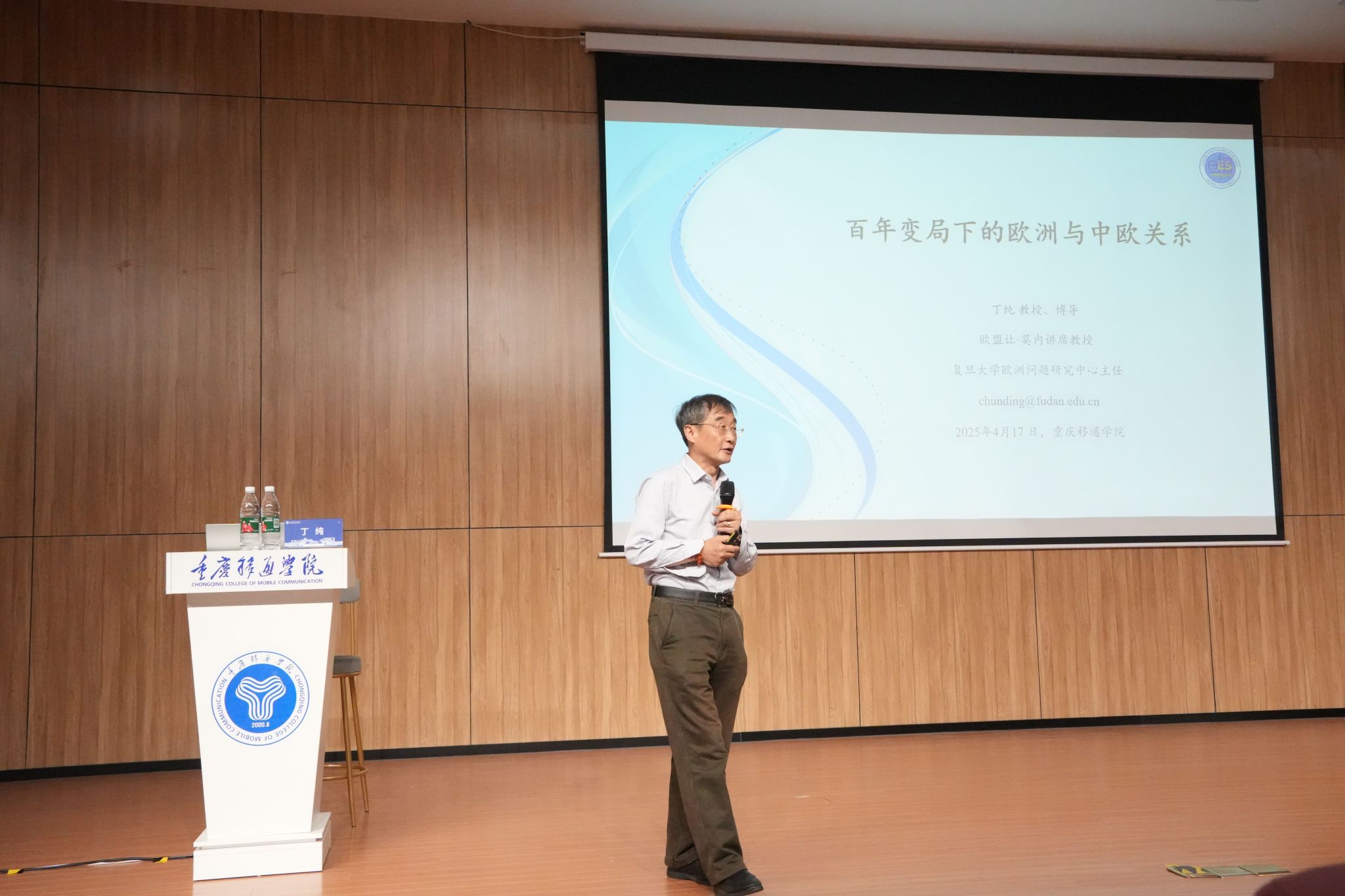在百年未有之大变局中,欧洲站在历史转折点,地缘政治风起云涌,中欧关系也迎来新的战略机遇。2025年4月17日晚,复旦大学经济学院世界经济研究所博士生导师丁纯教授应邀走进重庆移通学院文化移通-名家大讲坛,以《百年大变局下的欧洲与中欧关系》为题,在贤者楼131报告厅为师生带来了一场高屋建瓴、启迪深远的专题讲座。
