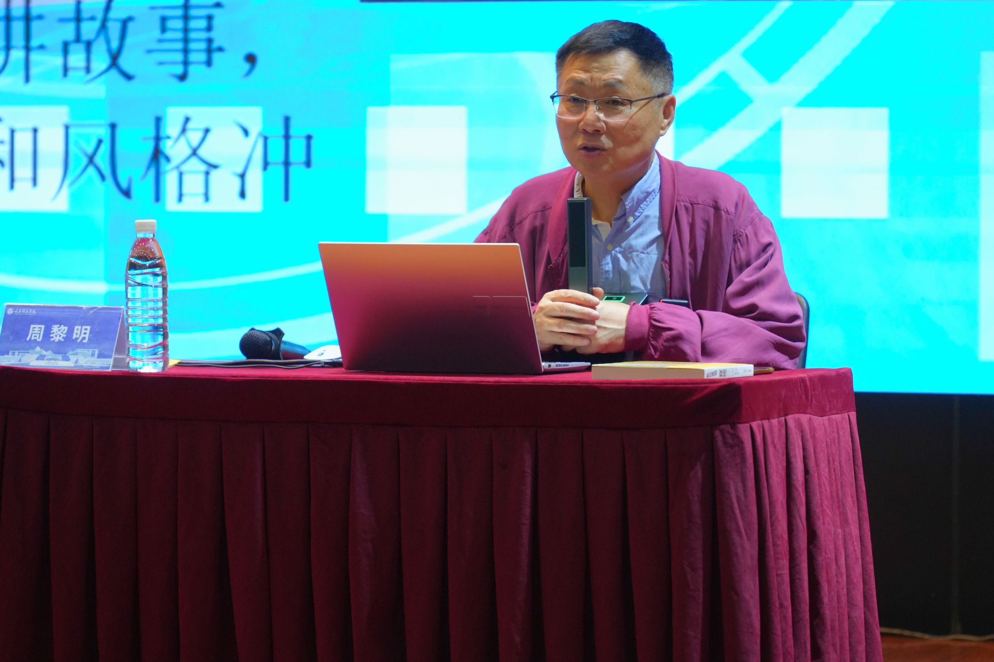 随后,周黎明老师从“讲故事是人类的刚需”出发,引入世界名著《人类简史》的观点,将人类历史划分为“认知革命”“农业革命”“人类的融合统一”“科学革命”四个阶段,并着重强调“认知革命的一大特点是拥有想象,能通过虚构事物共同编制出故事”。他以《史记》和杜甫诗篇为例补充说明:“人类有虚构本能,《史记》生动到像文学,杜甫的《石壕吏》真实到被很多人当作民间历史,‘石壕吏’是否为他亲眼所见并不重要,重要的是那样的事在当时肯定屡见不鲜。”