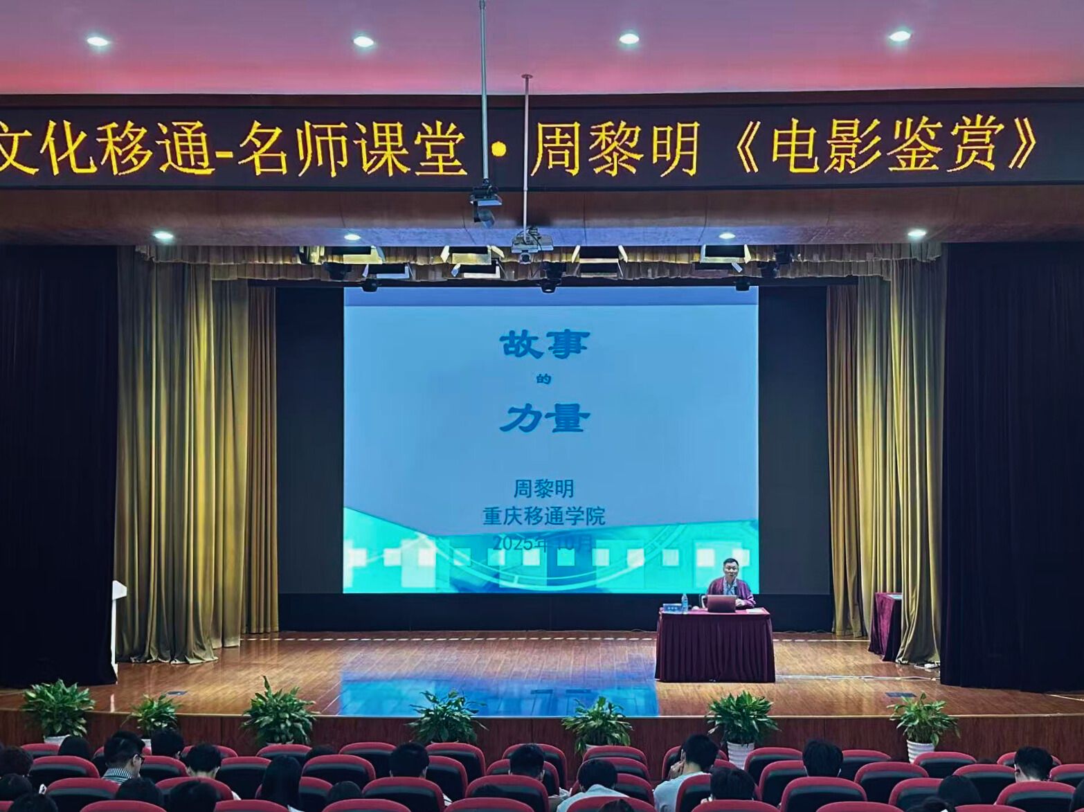 10月13日晚7点,被《洛杉矶时报》誉为“中国的罗杰・伊伯特”的双语作家、文化评论人周黎明老师,走进重庆移通学院下里巴人剧院,为在校师生带来一场主题为《电影鉴赏》的精彩讲座。讲座中,周黎明老师以数十年的实践经验与深度思考,围绕电影叙事展开分享,引导师生探索光影背后的叙事核心,引发在场师生的深刻共鸣。