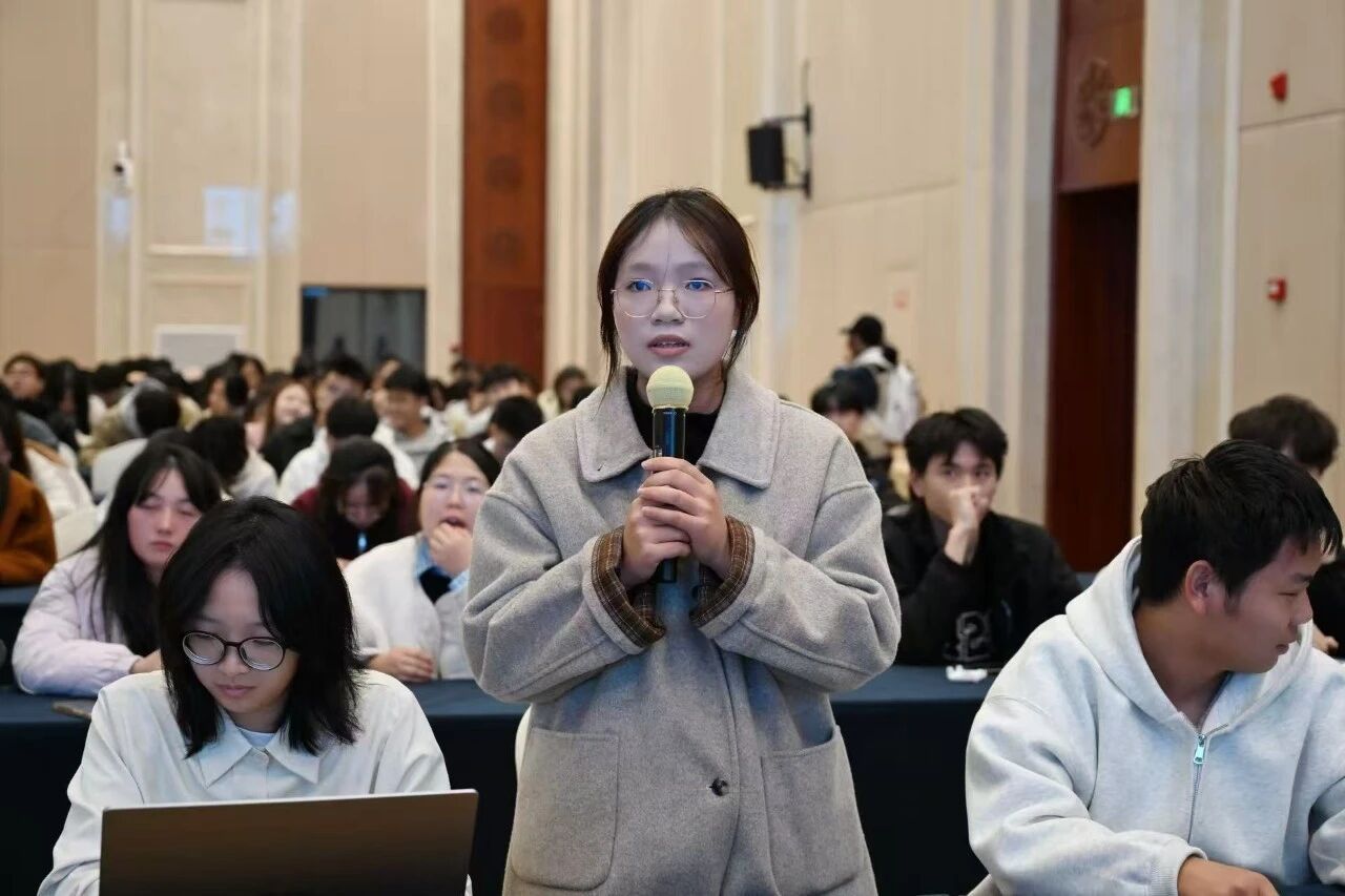 讲座上,万曼璐教授聚焦AI时代人文科学的重要性,以及人文教育在探索世界中不可或缺的作用与移通师生互动交流。她强调,人文精神的核心是个体独特的情感、经历与视角,这是AI技术无法复刻的,即便AI能辅助高效内容创作,也不能替代人文教育对批判性思维、共情能力等核心素养的培育。她倡导通过深度阅读经典、反思与实践提升人文素养,她鼓励学生保持思辨力、勇于探索。