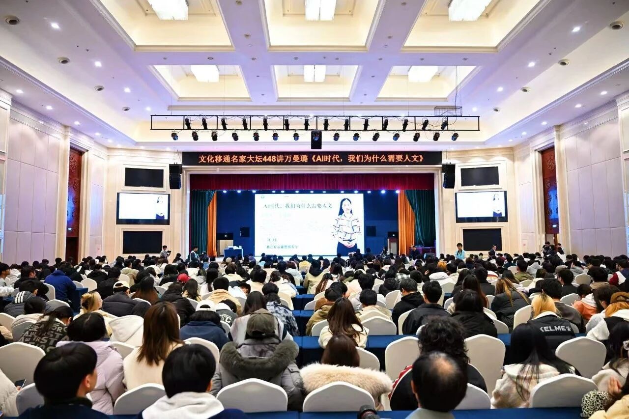 11月21日,中央电视台《百家讲坛》常驻嘉宾、重庆大学博雅学院教授、复旦大学文学博士万曼璐,以《AI时代,我们为什么需要人文》为主题在重庆移通学院(綦江校区)綦思报告厅为700余名移通师生展开专题讲座。