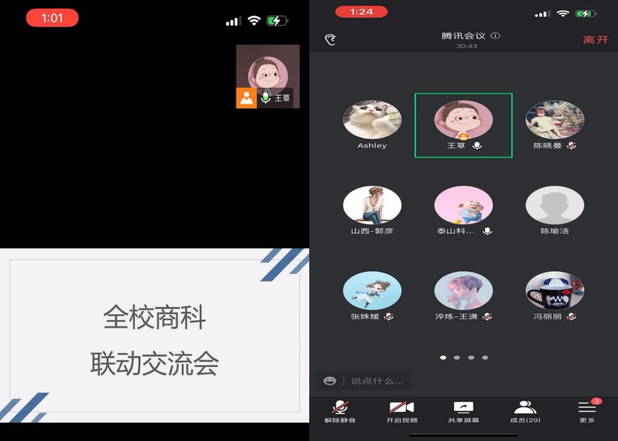 交流中,晋中信息学院淬炼·国际商学院副院长许德芳老师对课程思政提出了自己的看法。她表示,课程思政建设非常重要,三校相同课程、相同专业可以成立课程组,建立专门的学习交流群,随时就课程中遇到的问题或者好的教学经验分享交流,发挥各自学校的优势,相互学习,相互督促,共同进步。市场营销教研室主任庞婷老师将时事热点融入《市场营销学》,通过时事热点分析进一步加强课程思政建设。