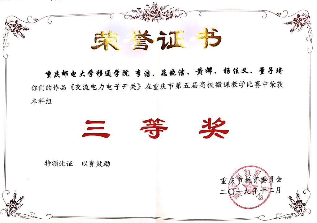 今年在学校各级领导和各部门的关心和大力支持下,在团队成员的努力下,智能工程学院教学团队主讲课程《电力电子技术》成功上线,两次获得重庆市微课本科组比赛三等奖,受到了领导和师生的认可,取得了一定成果。智能工程学院教学团队并没有因此而止将踏步前行,整行装再出发,明年将再接再厉,冲刺重庆市在线精品课程入围,再创精品、再铸辉煌。