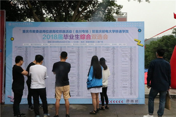 为了给毕业生和用人单位搭建更便捷的交流平台,更好的促进我校2018届毕业生顺利就业,5月24日上午,重庆市教委送岗位进高校双选活动(合川专场)暨我校2018届毕业生综合双选会在一二教广场拉开帷幕。本次双选会由重庆市教育委员会主办,重庆邮电大学移通学院承办,近130家用人单位来我校招聘人才,提供了3100余个工作岗位,需求涵盖通信、计算机、金融、营销、地产、服务等多个行业,来自全校各院系的2018届毕业生带着简历走进双选会,寻找理想的就业岗位。
