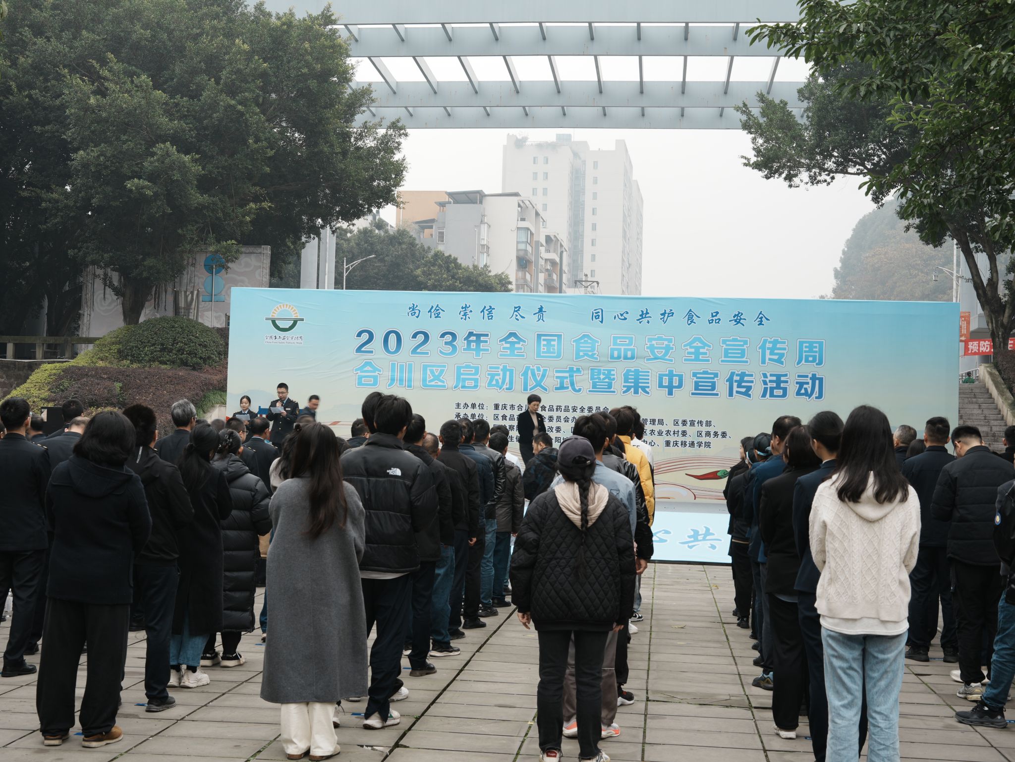 为动员全社会关心、支持和参与食品安全工作,扎实推进落实食品安全“两个责任”,促进公众树立健康饮食理念,提升消费信心,提高食品安全意识和科学应对风险的能力,11月23日上午,2023年全国食品安全宣传周合川区启动仪式暨集中宣传活动在我校举行,合川区政府副区长袁晓钦、区食品药品安全委员会成员单位、各镇街食品药品安全委员会办公室相关负责人、重庆移通学院、重庆人文科技学院、重庆对外经贸学院、重庆应用技术职业学院、重庆工商职业学院、重庆工商大学派斯学院等在合高校,永辉超市等14家合川区特殊食品规范化经营验收合格单位,以及区级人大代表、政协委员、区餐饮协会负责人、媒体和检测机构工作人员出席。