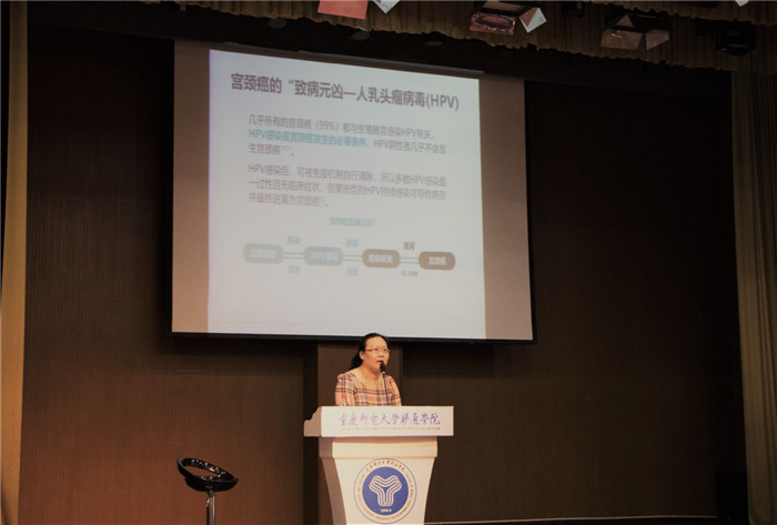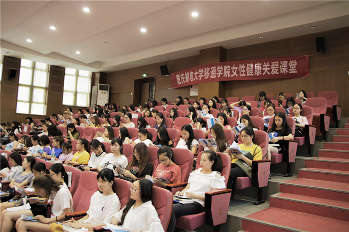 2018年6月6日中午,由全国妇联、国家卫健委、共青团中央指导、中国妇女发展基金会、心系列活动项目办公室主办,校青年志愿者联合会承办,鱼城书院学生自治委员会、校学生会女生部协办的中国女性宫颈健康促进计划——“贝壳行动”健康关爱课堂在我校下里巴人剧场开讲,妇科专家颜丽现场跟我校女大学生分享“两癌一病”(宫颈癌、乳腺癌和艾滋病)的预防和保健知识,现场座无虚席。
