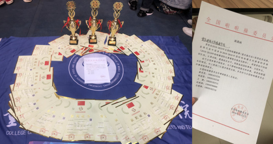 本次比赛共143支队伍报名参加3400余人,竞争可谓是相当激烈,但我校啦啦操队仍然奋力拼搏,经过一天五场的比赛挑战,成功揽下公开青年丙组自由舞蹈冠军,双人街舞冠军,双人花球冠军,双人爵士亚军,示范套第四名的优异成绩,并获得了参加2018-2019国际啦啦操系列赛事的参赛资格。