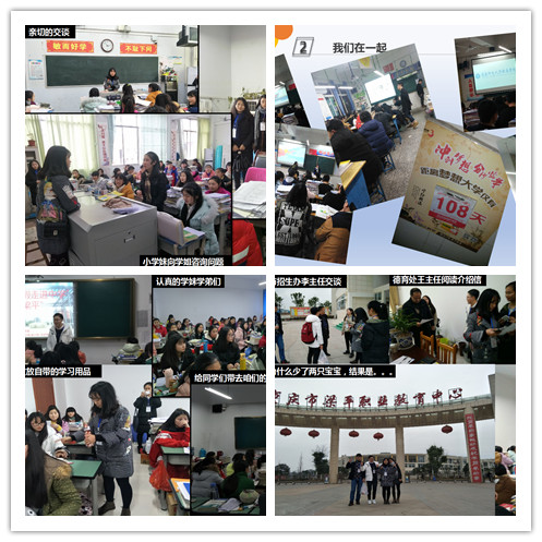 在活动的准备初期,我们在校园里多处设点,给来往学生提供活动介绍和咨询,报名人数近700来名,连续几日的面试虽然带来了几分疲惫,但甄选出的每一位队长及队员都是活动开展是否能成功的必要保障。在接踵而至的寒假生活中,各个小队在其分管部长的带领下积极展开工作,设计方案,联系学校,走进中学,及时反馈,整理资料,使得每个人在其中都有所收获,有所成长。