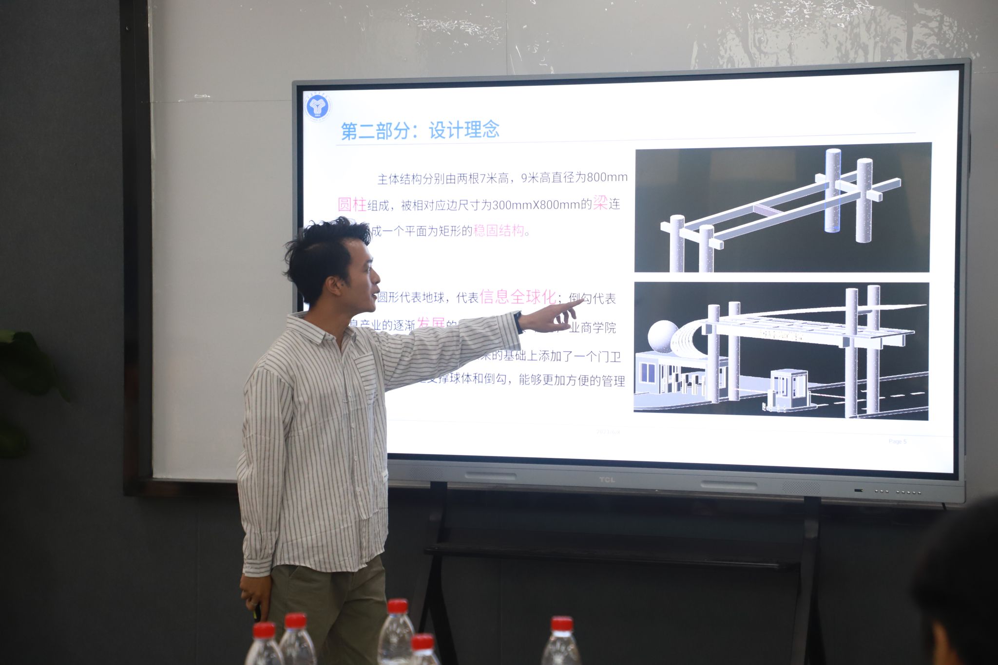 随后,参赛选手纷纷就作品设计理念、创作思路进行分享交流,黄总、贾设计师从设计理念、方案可行性、建筑材料等方面为在场学生一一解答分析。本次校门设计大赛人气奖获得者汤皓文表示,“校门设计作品的灵感主要源于学校的完满教育logo,完满教育作为学校育人模式的重要一环,是每个移通学子培养综合素质的重要方式及途径,将完满教育与学校大门合二为一,不仅彰显移通的特色,更是对完满教育成果的展示。”