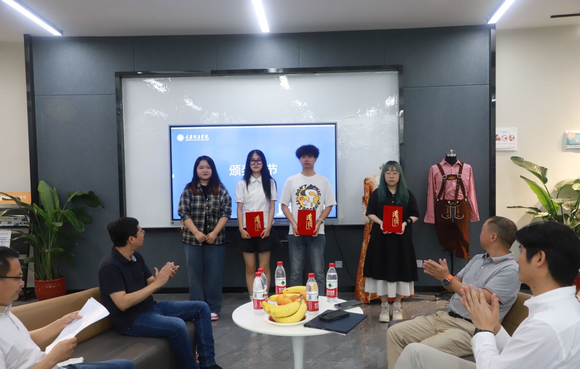 自校门设计大赛活动举办以来,共计收到投稿作品二十余幅。其中活动推文《投票!中国民办大学第一的北校门设计评比来啦》共获1.1万阅读量,6千余名师生校友参与评选。经过初审、复审及专家领导综合评定,共评选出一等奖2名,二等奖2名,三等奖2名,优秀奖3名,人气奖1名。颁奖典礼上,由高级副总裁黄春友、设计师贾静、校长助理张平、品牌营销与新闻中心主任苏述庚、品牌营销与新闻中心副科长程靖媛分别为获奖选手颁发获奖证书。