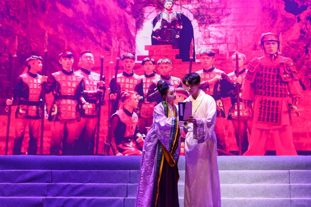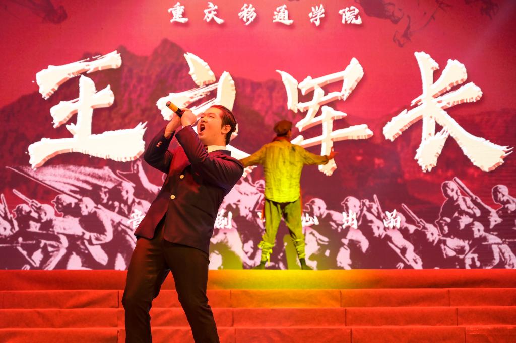 我校优秀毕业生陈治霖、刘朝晖现场演唱《王良军长》宣传曲目,获现场观众热烈掌声。音乐剧《王良军长》作为我校音乐剧中心成立后首部打造的原创音乐剧项目,以重庆綦江革命英雄人物王良为原型,讲述了红军将领王良同志从“投身黄埔”到“参加革命”,再到“屡建功绩”的传奇故事。宣传曲目的作曲、编曲由我校教师向成完成,作词由教师周振宇、学生陈治霖共同完成。