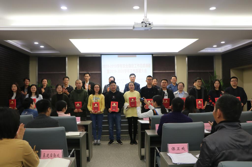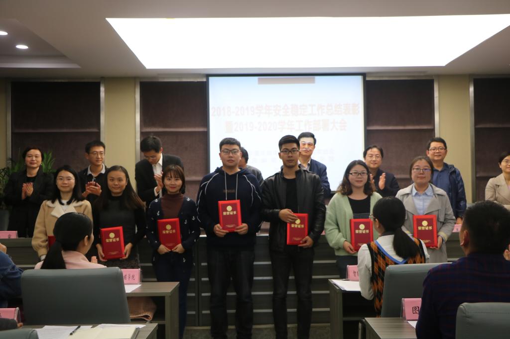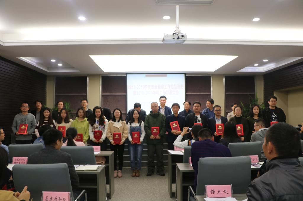 10月30日下午,我校在行政楼601会议室召开了2018-2019学年安全稳定工作总结表彰暨2019-2020学年工作部署大会。会议对2018-2019学年安全稳定工作进行总结,部署了2019-2020学年安全稳定工作,并对6个先进集体、13名先进个人、22名案例竞赛获得者进行了表彰。苏开荣、张德民等校领导参加会议并为获表彰者颁奖。