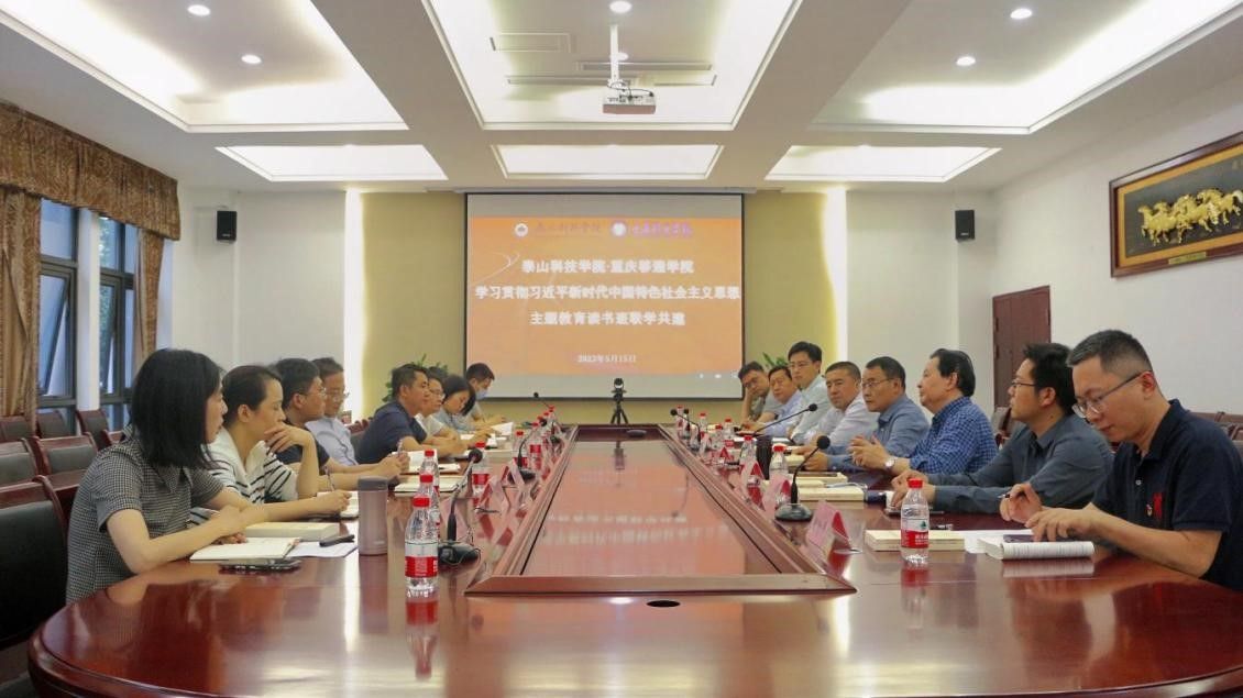 为持续推动学习贯彻习近平新时代中国特色社会主义思想主题教育走深走实,5月15日-17日,泰山科技学院党委书记彭春雷、中共山东省委教育工委派驻泰山科技学院党建指导员张洪进、孙磊一行莅临我校交流学习。共同开展学习贯彻习近平新时代中国特色社会主义思想主题教育读书班联学共建暨“凝心铸魂牢根基,立德树人建新功”主题教育实践研学。我校双校区党委委员、领导班子、党委理论学习中心组成员、党支部书记代表等人参加。