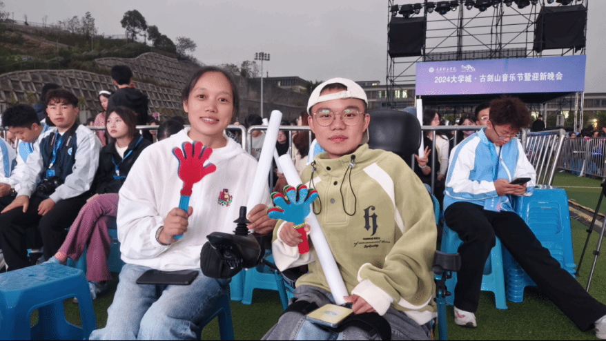 曾经,睿燊在医院复诊的时候,医生告诉周妈妈,因为多年只能靠轮椅出行,睿燊有一定的自闭倾向。但是,来到大学后,她发现,儿子身上的自闭的阴影,在大学校园中渐渐消融了。