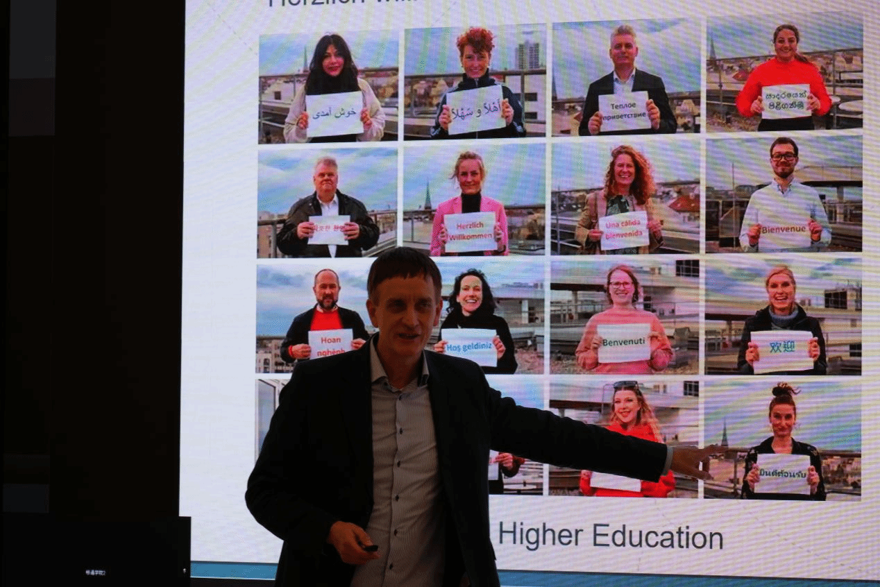 英戈·舒内曼介绍道,柏林bbw应用技术大学的上层架构是柏林勃兰登堡商业协会,内部课程的开设和专业的设置是主要是为了满足企业对高级人才的需求。在与重庆移通学院的合作项目方面,专业课程可以根据不同的需求进行灵活的调整。同时,柏林bbw应用技术大学会定期进行师资培训以及夏令营和冬令营的展开,他表示非常期待重庆移通学院能够前往参与。