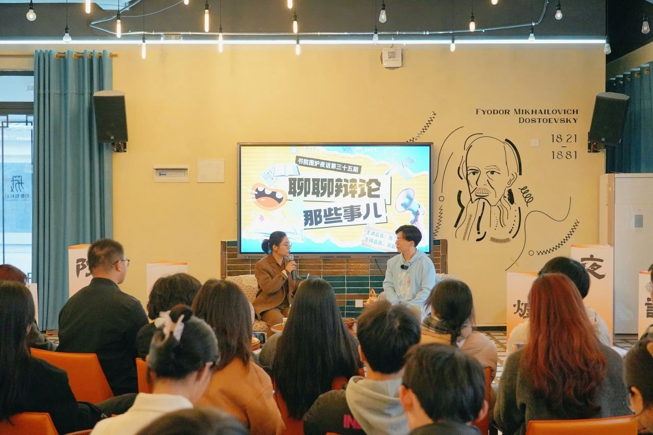 第三十五期书院围炉夜话现场,陈铭与100余名辩论爱好者在天空书院5楼陀思妥耶夫斯基书店“一起来聊聊关于辩论的那些事儿”。他分享了自己的辩论经历,从最初的懵懂到成长为辩论场上的佼佼者,再到作为评委和教练的深刻理解。陈铭强调,辩论不仅是一场竞技,更是心态的较量,更展示了辩论中的技巧与策略。互动环节中,陈铭耐心回答学生关于评分标准的问题,提供了专业建议。