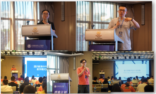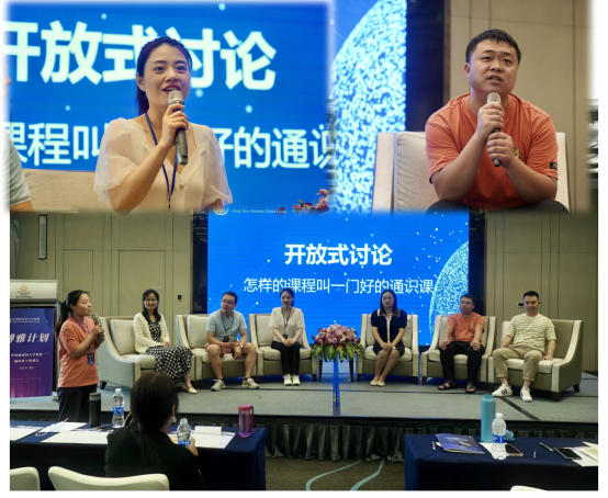 齐维强老师代表“人文精神与生命关怀”板块,介绍了哲学通识课程的教学理念、教学方法,并呈现了通识哲学课的教学反馈。程荣荣老师以“生活中的经济学”为例,对标一流课程要求,从课程目标、教学设计、课程内容、教学方法、成绩评定、教学效果六方面呈现了课程的总体情况。陈霞老师从电影评论中心的育人特色出发通过介绍电影通识教育概况、电影导师制、影评大赛、社团指导与建设、品牌宣传五方面介绍了电影评论中心的育人模式。李先锋老师从“创意写作”课程的开设现状、课程建设情况、师资情况、教学方法、“大班+小班”的培养模式分析了课程的优势及存在的问题。张亚杰老师介绍了“社会变迁与文明对话”板块的课程建设的整体情况,梳理了后续课程团队建设的思路。杨倩老师从创新内容、创新方法与手段、创新平台等方面介绍了“道德承担与价值塑造”板块课程的创新点。分享完毕后,发言代表与现场老师们进行了开放式讨论,进一步探讨了六大板块课程的建设要点。