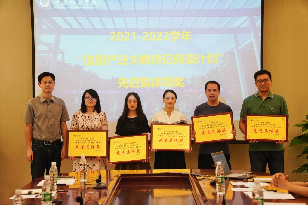 会议伊始,校长助理张平宣读2021—2022年“信息产业大咖传记阅读计划”表彰文件。校长助理刘枚为2021-2022学年信息产业大咖传记阅读计划优秀“读书报告奖”获奖代表颁奖,副校长周伟为2021-2022学年信息产业大咖传记计划“先进集体”颁奖。