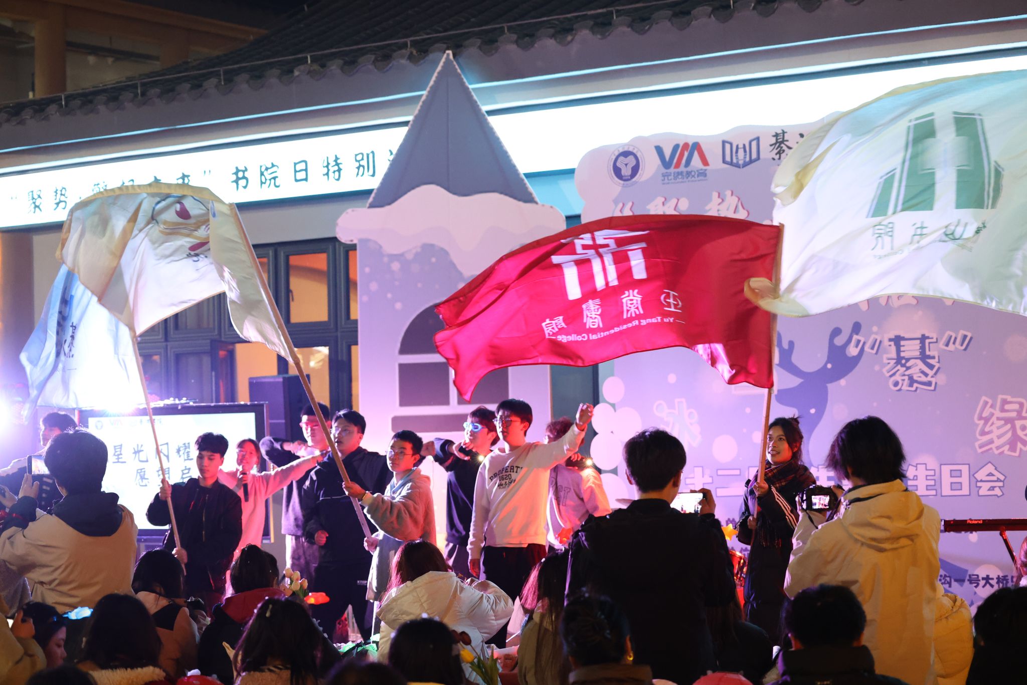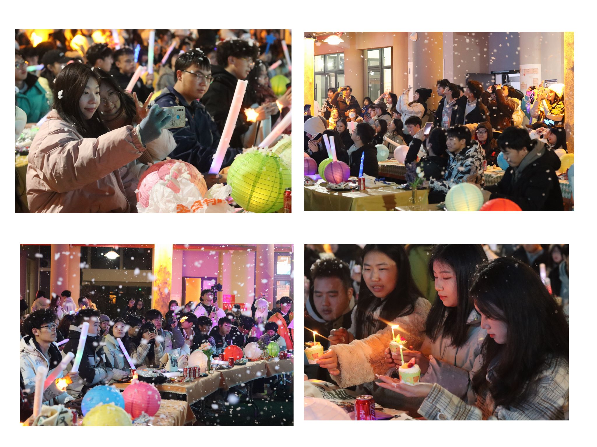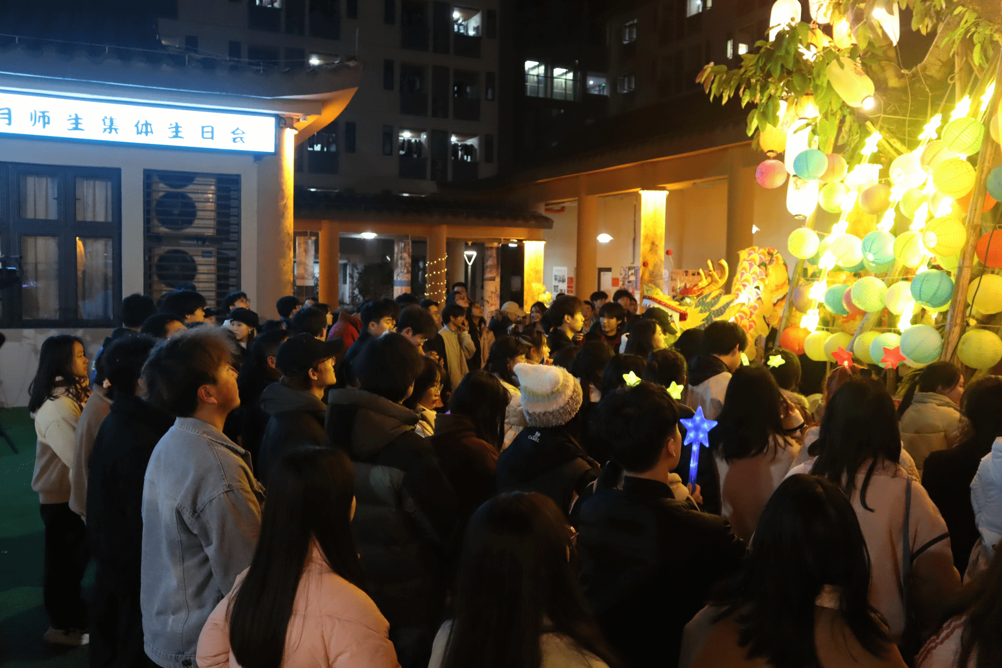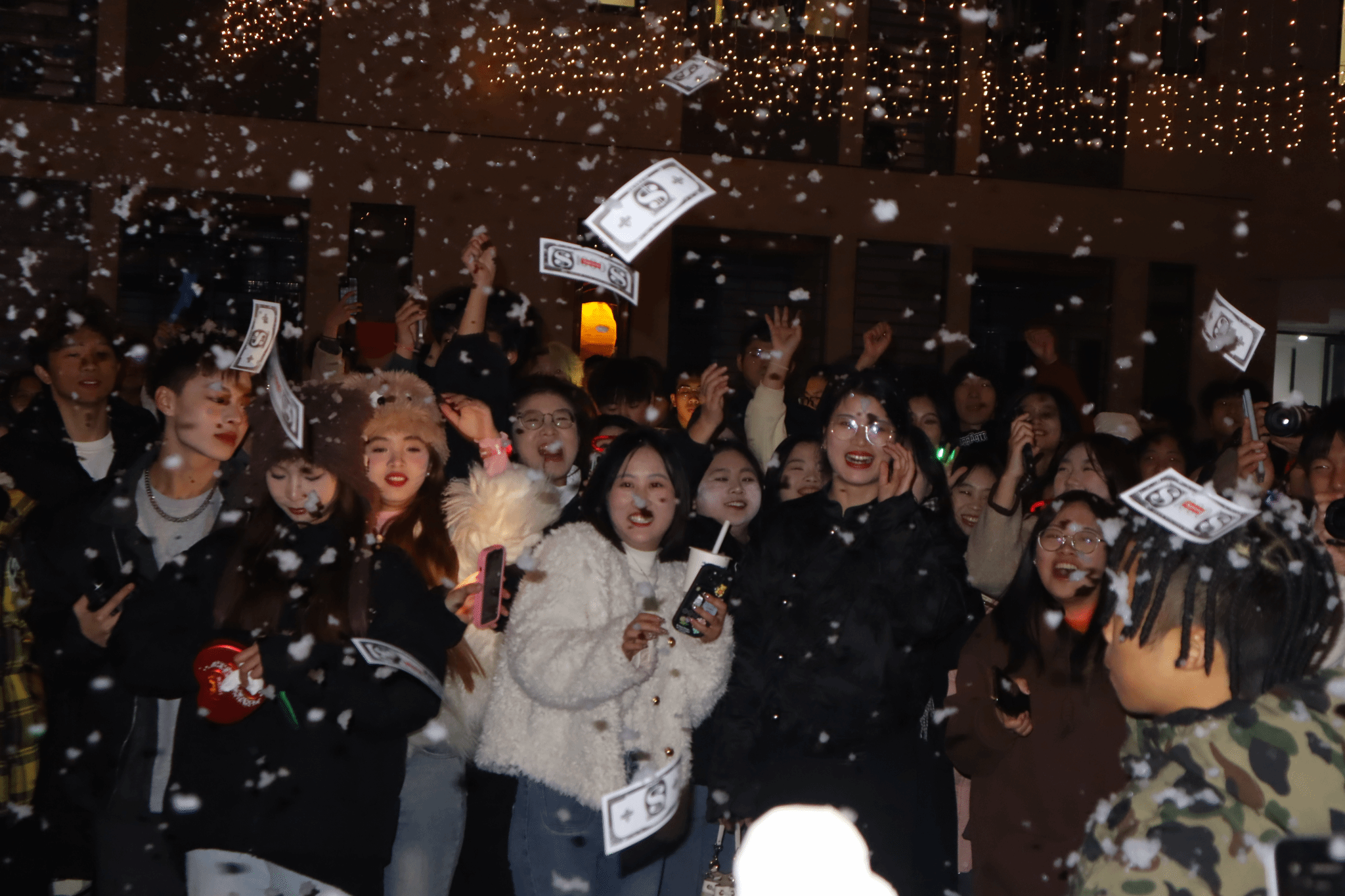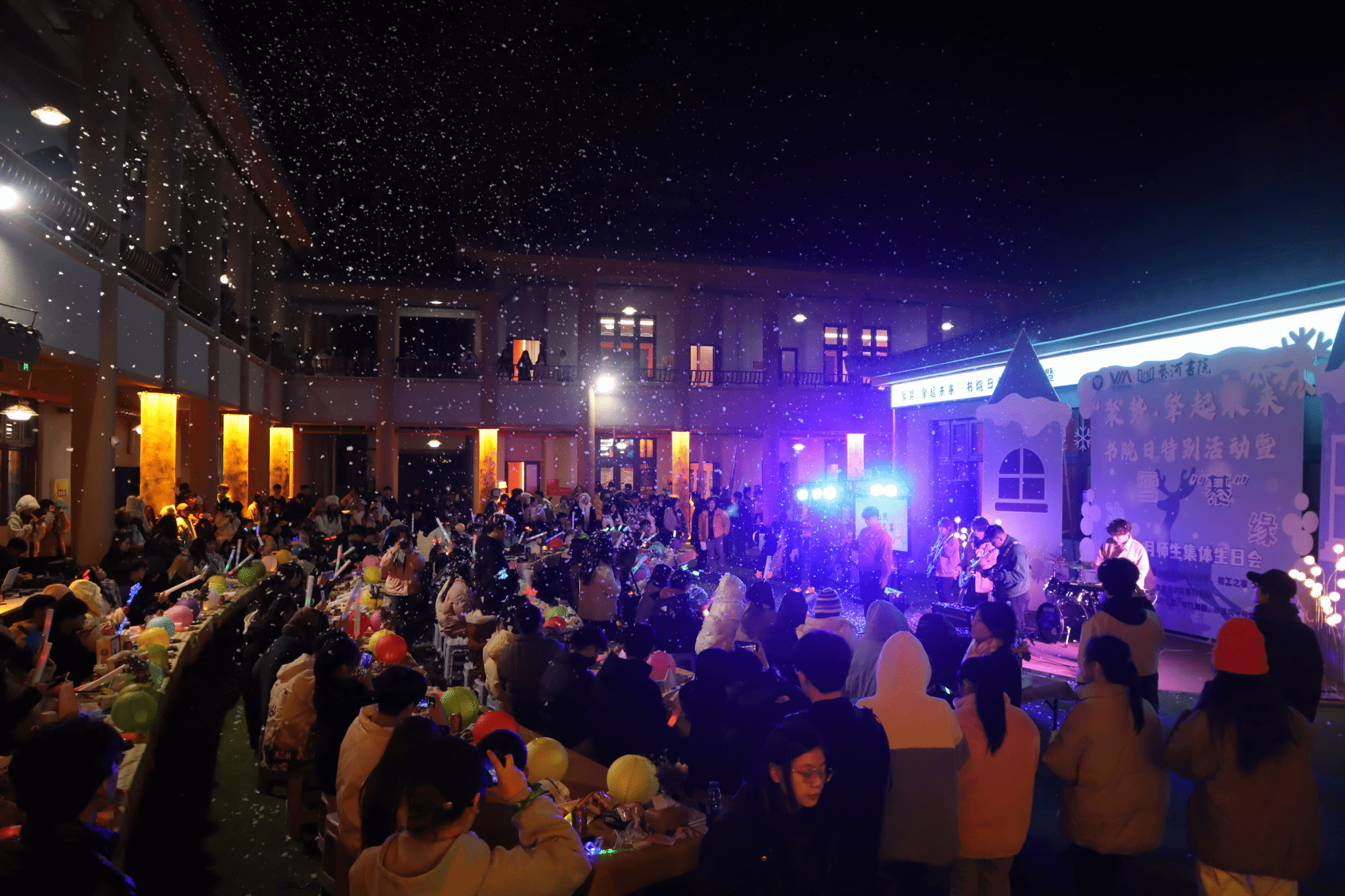 重庆綦江来自书院的第一场雪如诗如画,悠然飘落,舞动着冬日浪漫。寿星们在舞蹈中热情回应;歌曲表演激情澎湃,点燃全场;乐队演出犹如青春般充满活力,生生不息;一张张“顶呱刮卡”揭开年度的连绵好运……表演结束后,师生共同分享蛋糕,频频相视欢笑,寿星们在灯笼上写下了美好祝愿,并悬挂在这棵来自合川大石的百年黄桷树上,将心愿和祝福高高举起,祈求来年平安健康,万事顺意。
