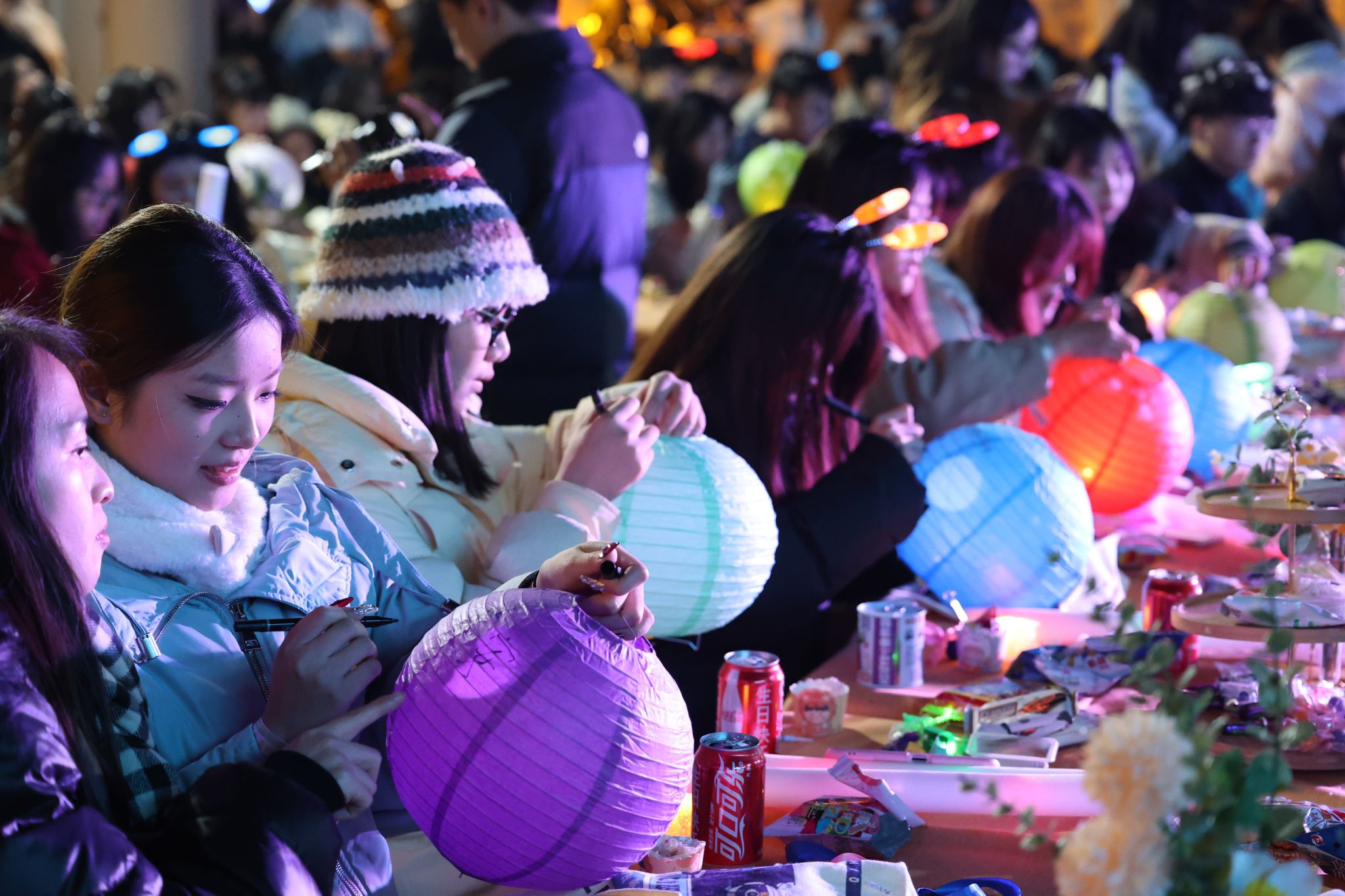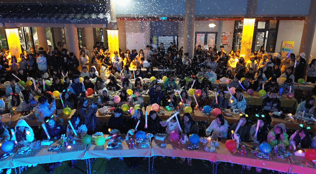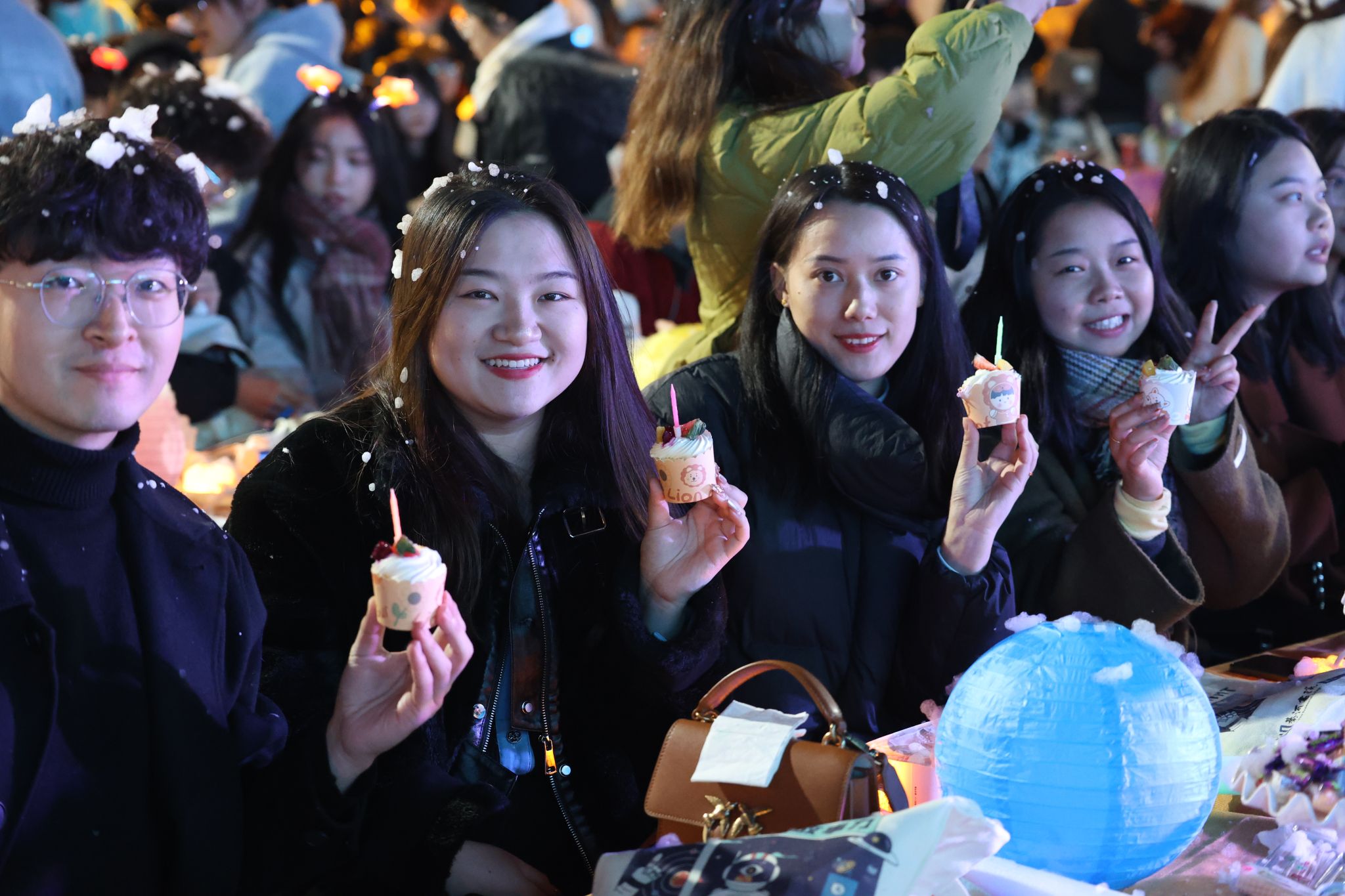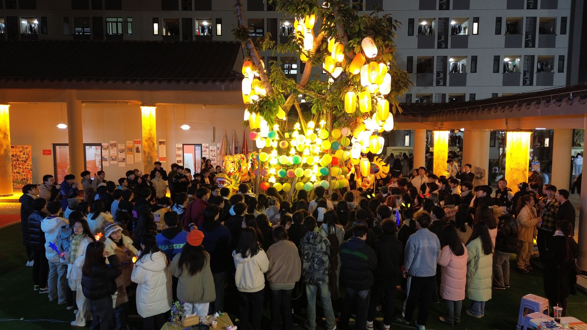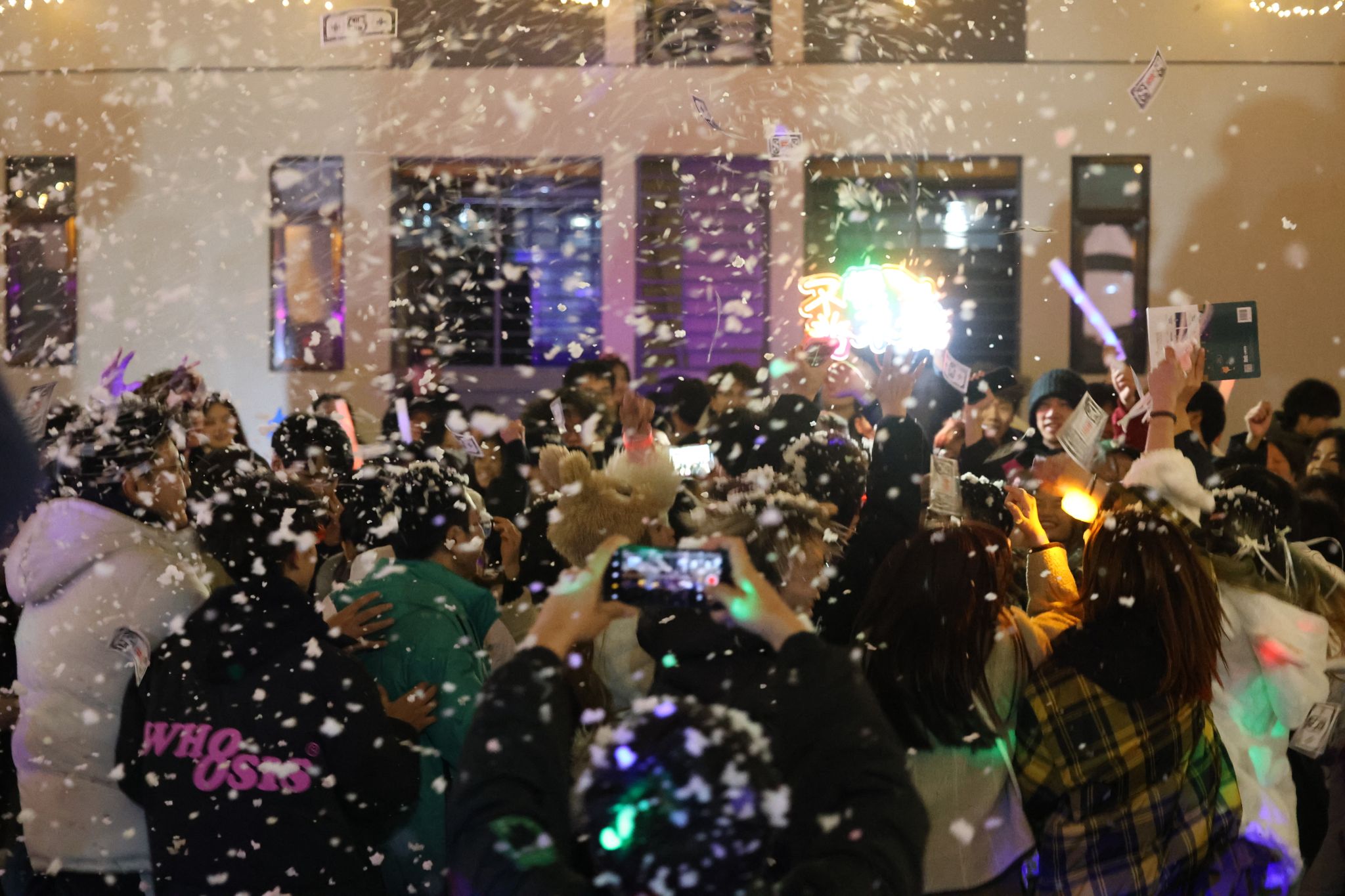 重庆綦江来自书院的第一场雪如诗如画,悠然飘落,舞动着冬日浪漫。寿星们在舞蹈中热情回应;歌曲表演激情澎湃,点燃全场;乐队演出犹如青春般充满活力,生生不息;一张张“顶呱刮卡”揭开年度的连绵好运……表演结束后,师生共同分享蛋糕,频频相视欢笑,寿星们在灯笼上写下了美好祝愿,并悬挂在这棵来自合川大石的百年黄桷树上,将心愿和祝福高高举起,祈求来年平安健康,万事顺意。