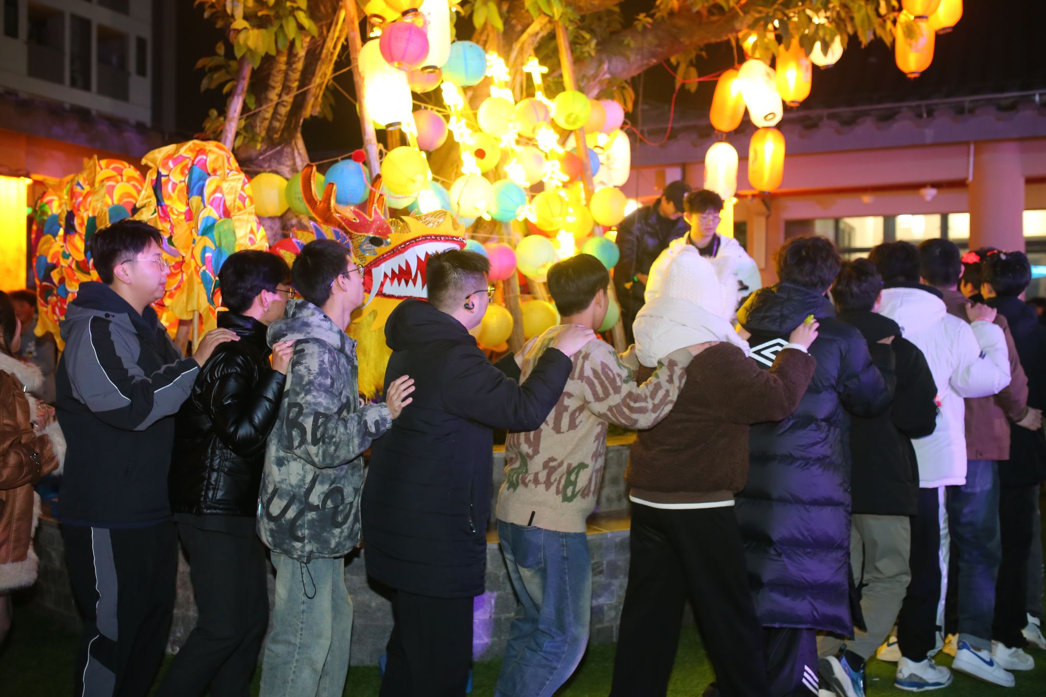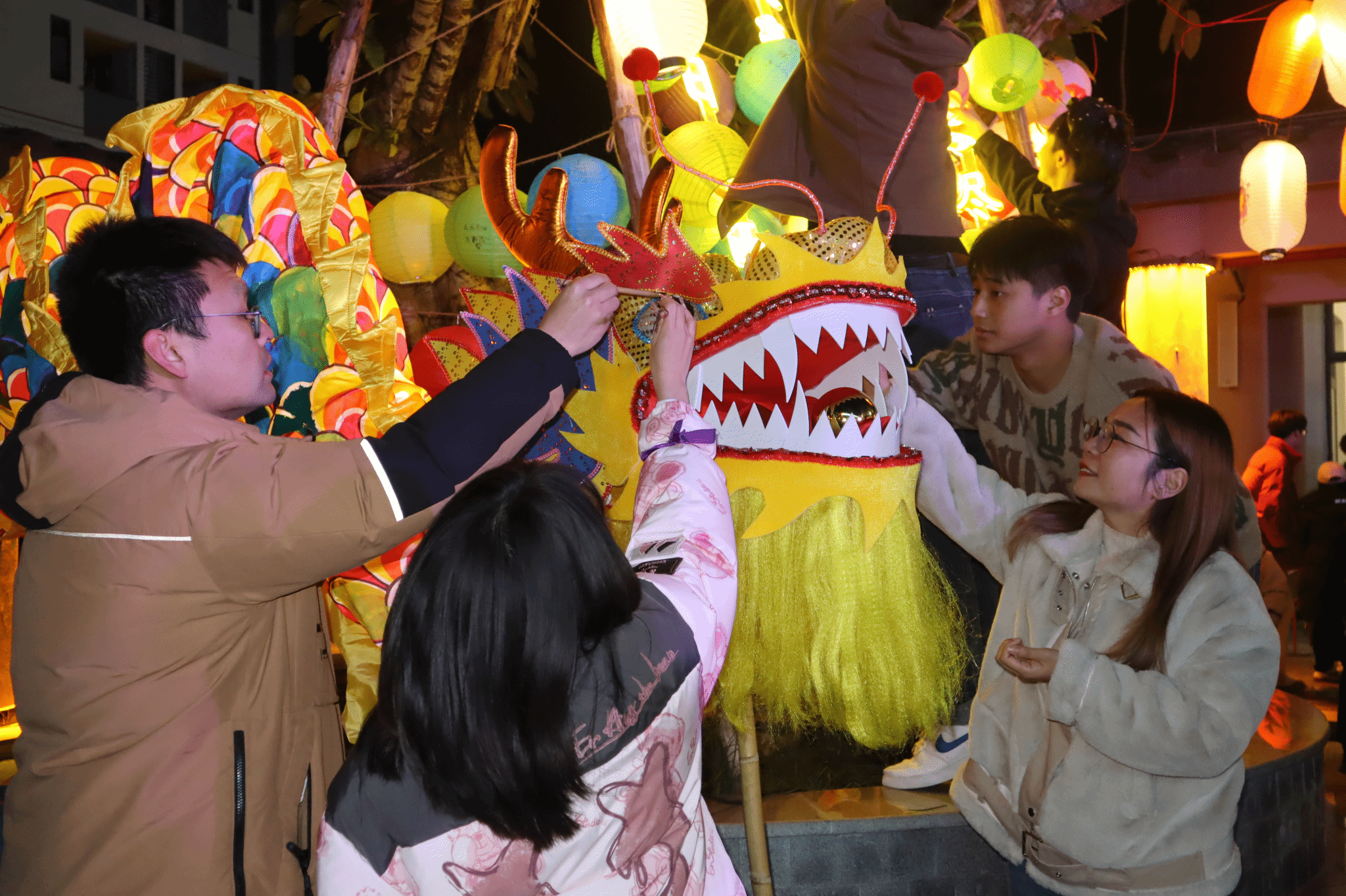 在这个充满欢乐与团结的书院日上,书院各级学生组织主席团在相亲相爱的一家人的音乐中,挥舞着承载各书院特色“领导力”与“家文化”的旗帜,坚持“以文育人、以文化人”理念,为创造更加完满和谐的书院生活而接力奋斗。卯兔辞旧,辰龙新来,书院部副部长曹玉姣老师,綦河书院综合办公室主任张天赐老师及书院学生代表为巨龙点睛,金龙昂首,万象启新,大家彼此携手,在音乐声中围绕着这棵承载愿望与祝福的百年古树共舞。