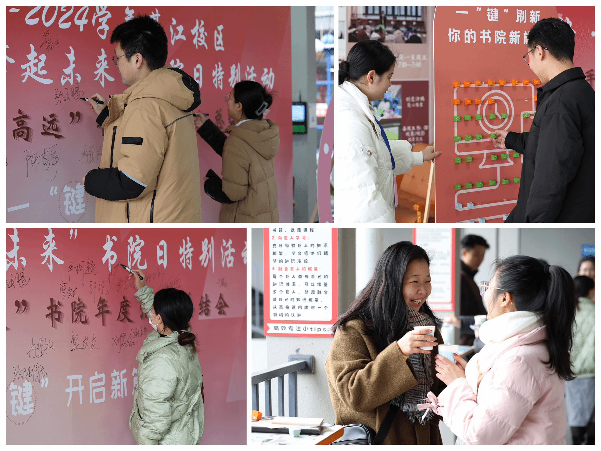 12月22日,2023-2024学年綦江校区第二届书院日如期而至。本次书院日以“聚势·擎起未来”为主题,通过“携手臻高远”书院年度汇报总结会,“热烈正当时”书院特色活动展示日,充分展现社区阵地、互动空间、文化浸润等培养路径下的书院育人成果,让书院学子于完满舞台上驻足自洽,在师生共情中聚焦成长,自擘画愿景后勇立潮头,开展冰雪“綦”缘十二月师生集体生日会,一同欣赏在书院的第一场雪,在完满教育书院大平台上构建起诉说、倾听、共鸣的朋辈互动新局面。