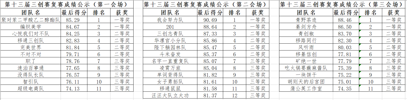 (第十三届全三创赛重庆移通校赛获奖情况)
