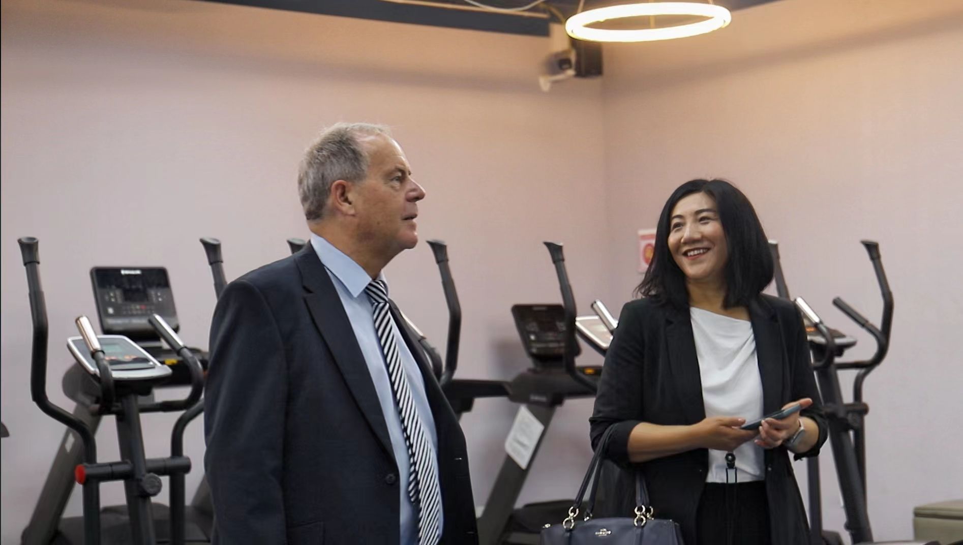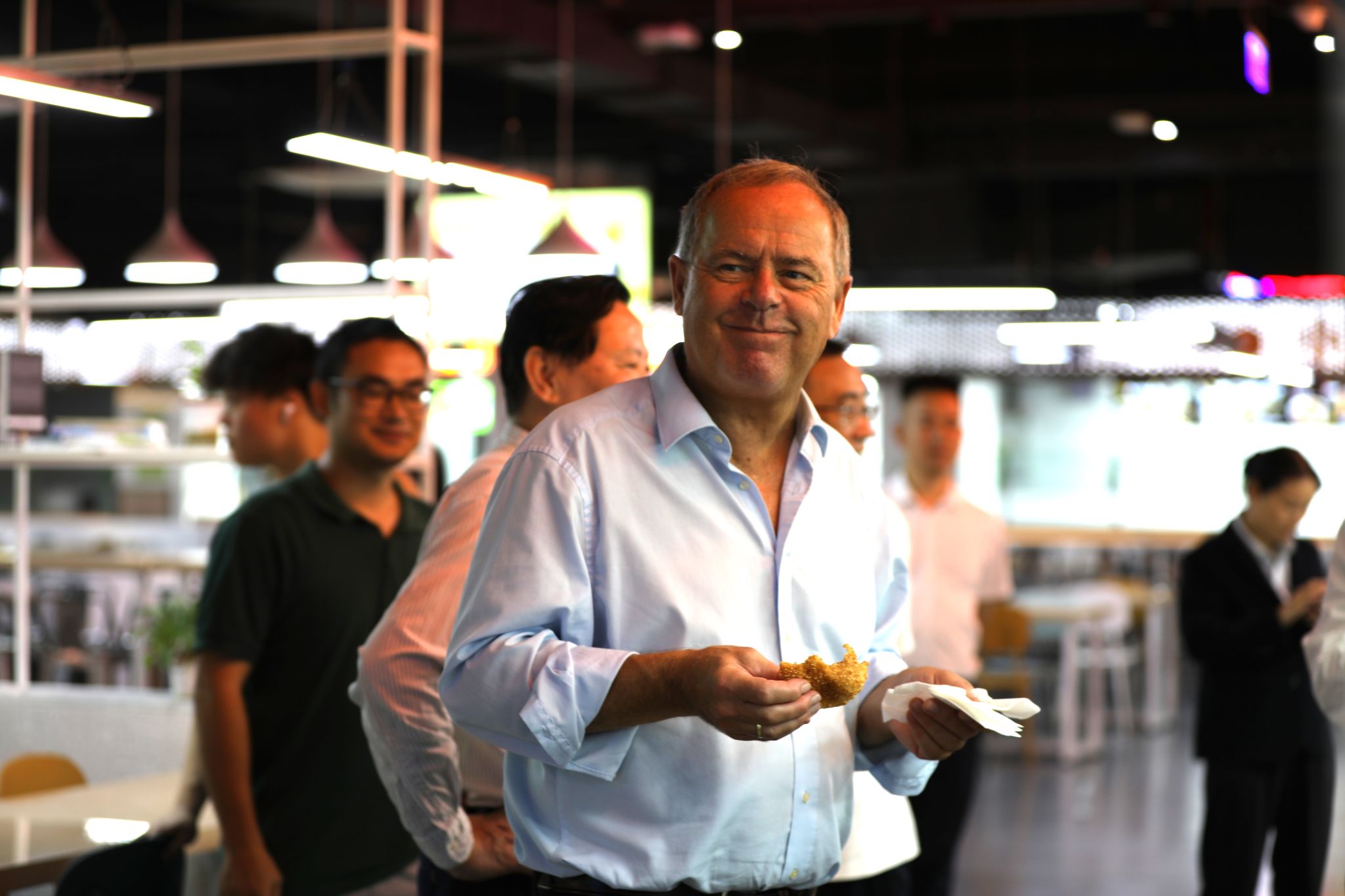 Harald Beschorner校长一行深入校区,先后走访参观了玉棠书院“棠人街”、云里发呆室,綦河书院春山·录音棚、Today健身房,東溪食堂等,Harald Beschorner校长与师生亲切互动,在书院弹吉他、在食堂品尝油饼果子。在参观过程中,张衍学副校长结合集团教育理念,介绍了实行全员书院制大学办学模式。Harald Beschorner校长一行对学校的办学理念与书院建设给予高度评价。“这样的校园环境太好了,真希望我也能重返青春,在这样的校园,再学习一次!”。