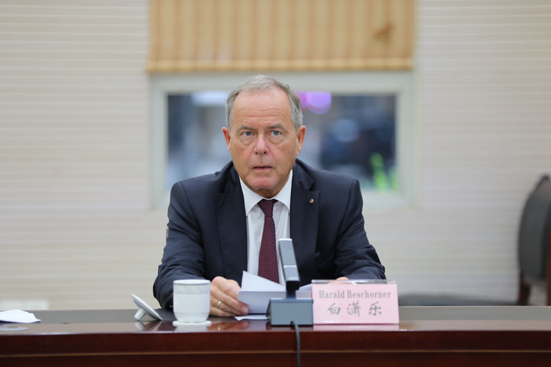 Harald Beschorner校长简要介绍了德国埃森经济管理应用技术大学基本情况。他表示,本次与重庆移通学院正式签署合办重庆埃森经济科技大学的协议,是双方经过慎重思考和研究后作出的决定。希望通过双方的深入合作,为重庆的经济社会发展进一步提供智力支持。相信这所中外合办高校一定会不负众望,早日建成,成为中国西部第一所独立法人中外合作办学机构。同时,他坚信,在綦江区各级领导和有关部门的关心指导下,重庆埃森经济科技大学一定会成为一所让师生满意、让政府信任、让社会满意的高水平国际化应用技术大学。